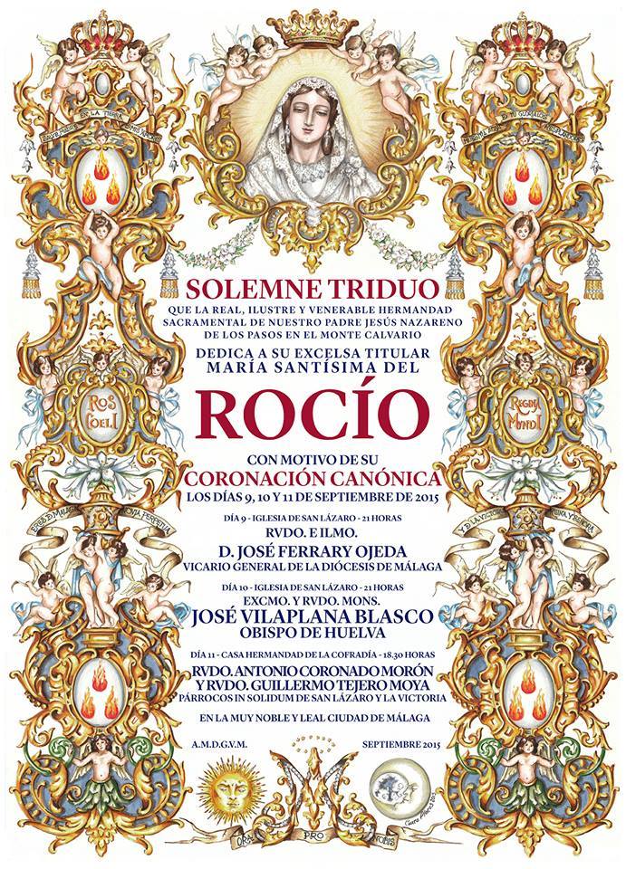 La Real, Ilustre y Venerable Hermandad Sacramental de Nuestro Padre Jesús Nazareno de los Pasos en el Monte Calvario y María Santísima del Rocío dedica Solemne Triduo a su Excelsa Titular la Santísima Virgen del Rocío durante los días 9,10 y 11 de septiembre de 2015.