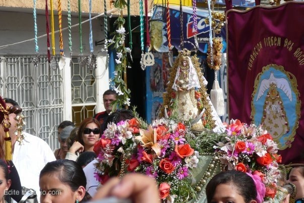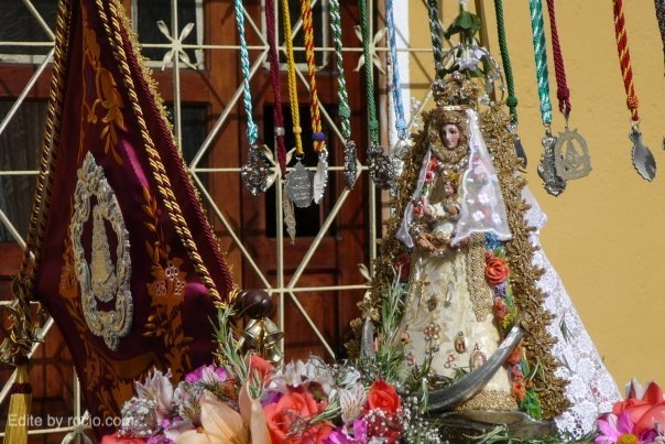 HERMOSA IMAGEN DE LA VIRGEN DEL ROCIO POR LAS CALLES DE MERIDA VENEZUELA RODEADA DE LAS MEDALLAS QUE ALGUNOS HERMANOS ROCIEROS NOS HAN ENVIADO. KARELIA GRISOLIA