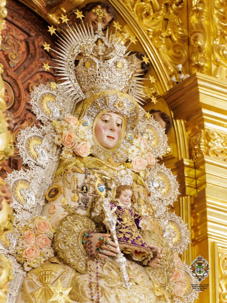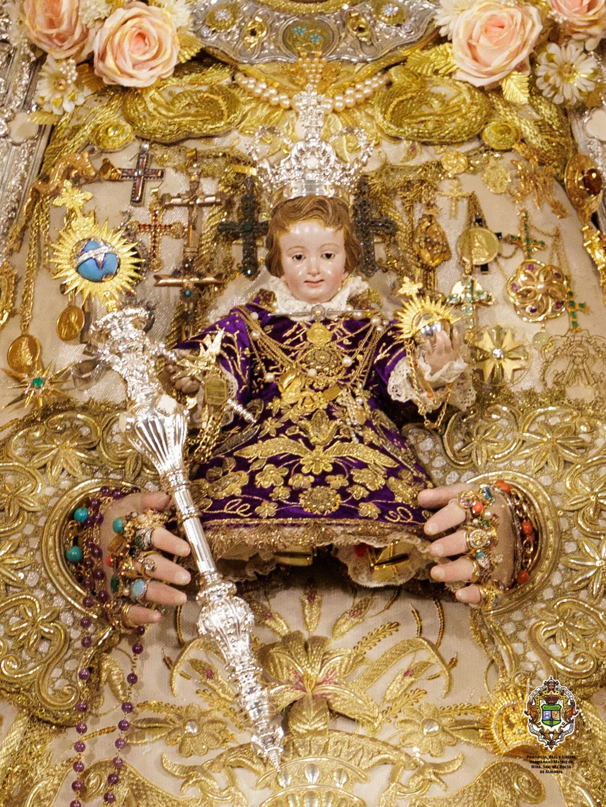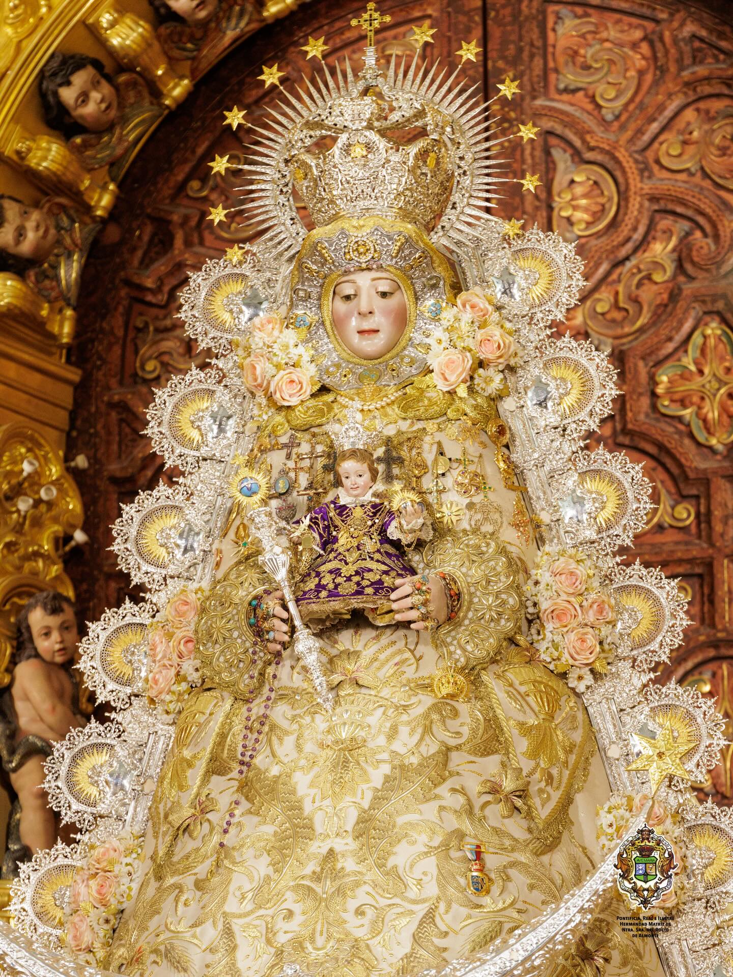 La Virgen luce un nuevo conjunto de flores, mientras que el Niño estrena un traje donado por los hermanos Taillefert.