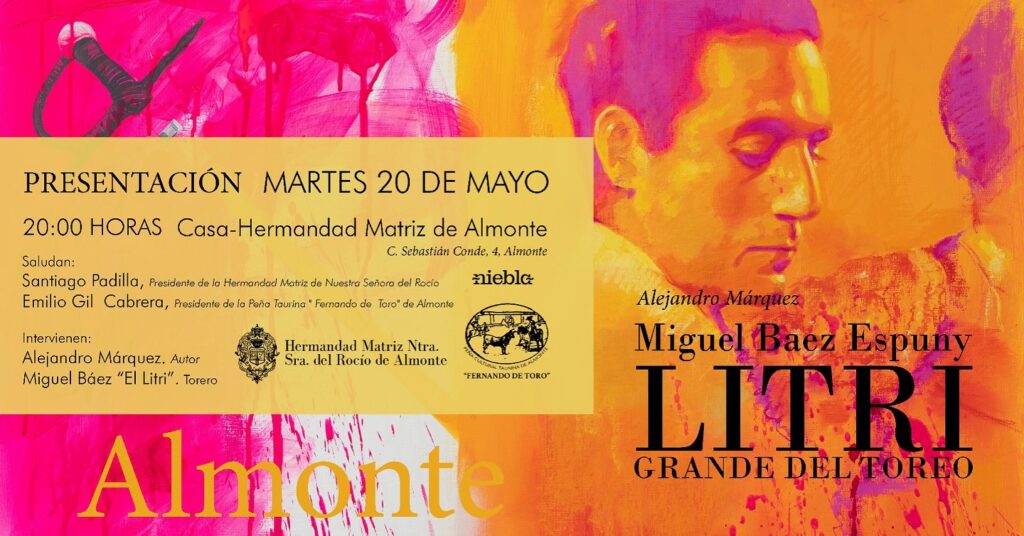 El martes que viene (20 de mayo), a las 20,00 horas en nuestra casa-Hermandad, en colaboración con la Peña Taurina De Almonte Fernando De Toro , presentamos esta obra publicada recientemente por la editorial Niebla, que rescata la biografía de este icono de la tauromaquia onubense, miembro de una gran dinastía torera, muy devoto de la Virgen del Rocío. En este acto que será un homenaje a su persona, nos va a acompañar su hijo, el también diestro, Manuel Báez Spínola. Otro grandísimo devoto de la Virgen del Rocío.