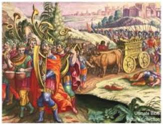 Guarda esta leyenda gran relación con un relato bíblico del Antiguo Testamento, que aparece concretamente en el Segundo Libro de Samuel, en el que se habla sobre el Arca de la Alianza. El Arca fue robada por los filisteos, y como a ellos solo les había traído desgracias y plagas, decidieron devolvérsela al pueblo de Israel. Sin embargo, al intentar transportarla, los porteadores filisteos caían fulminados. Así que se les ocurrió montarla en una carreta tirada por dos bueyes y dejar que siguiera su curso libre alejándola por el desierto. El Rey David encontró el Arca y la llevó hacia Jerusalén en la carreta de bueyes con un cortejo de su pueblo danzando y tocando trompetas, repletos todos de júbilo.La Carreta