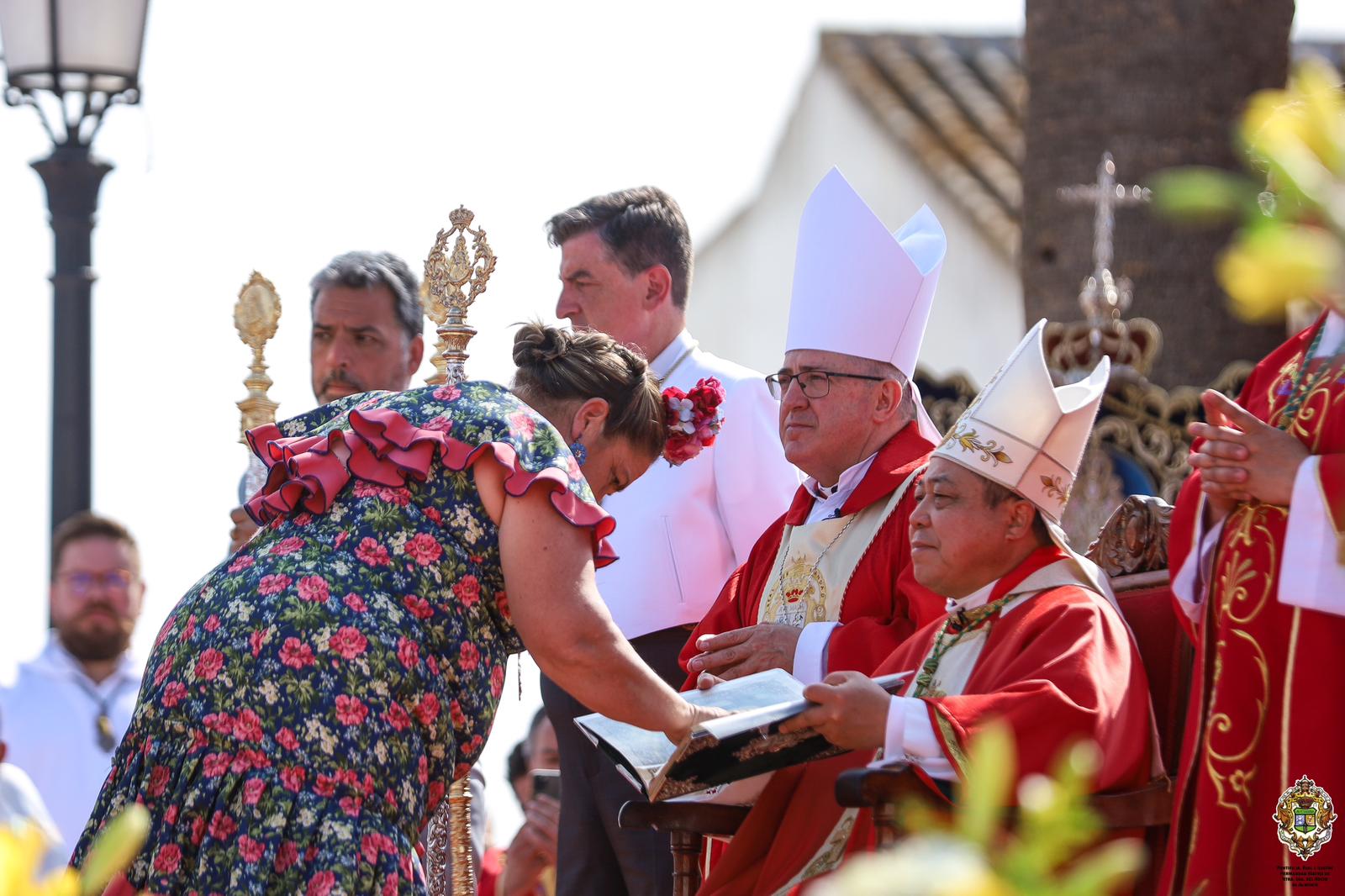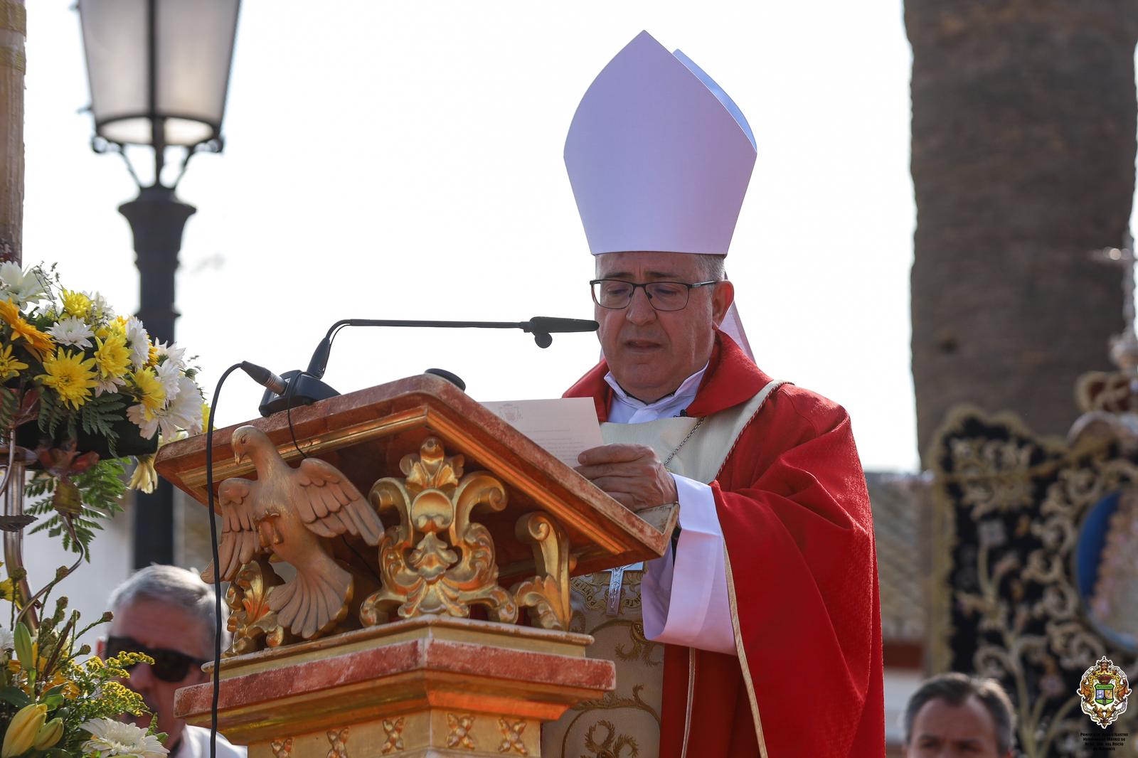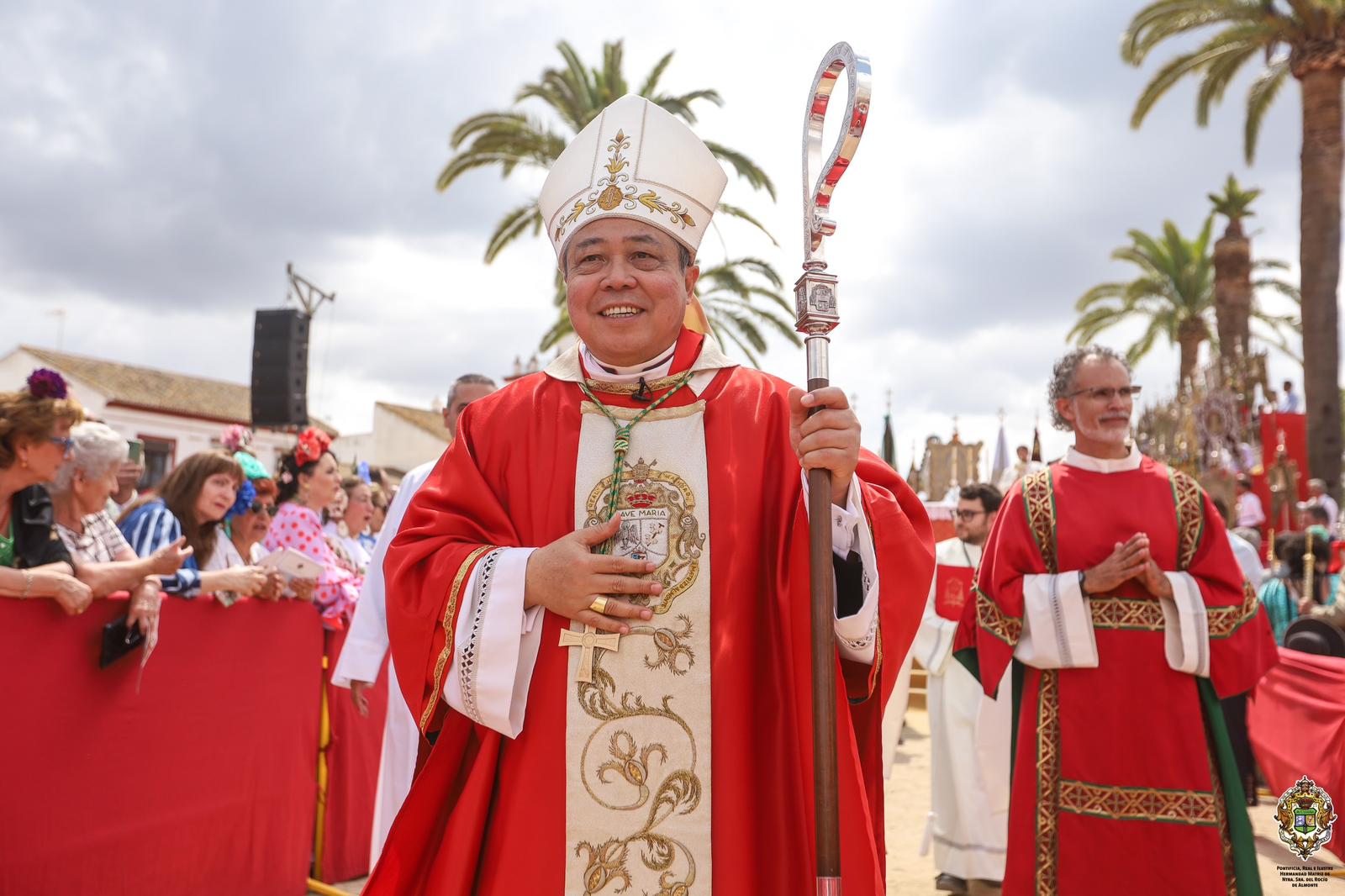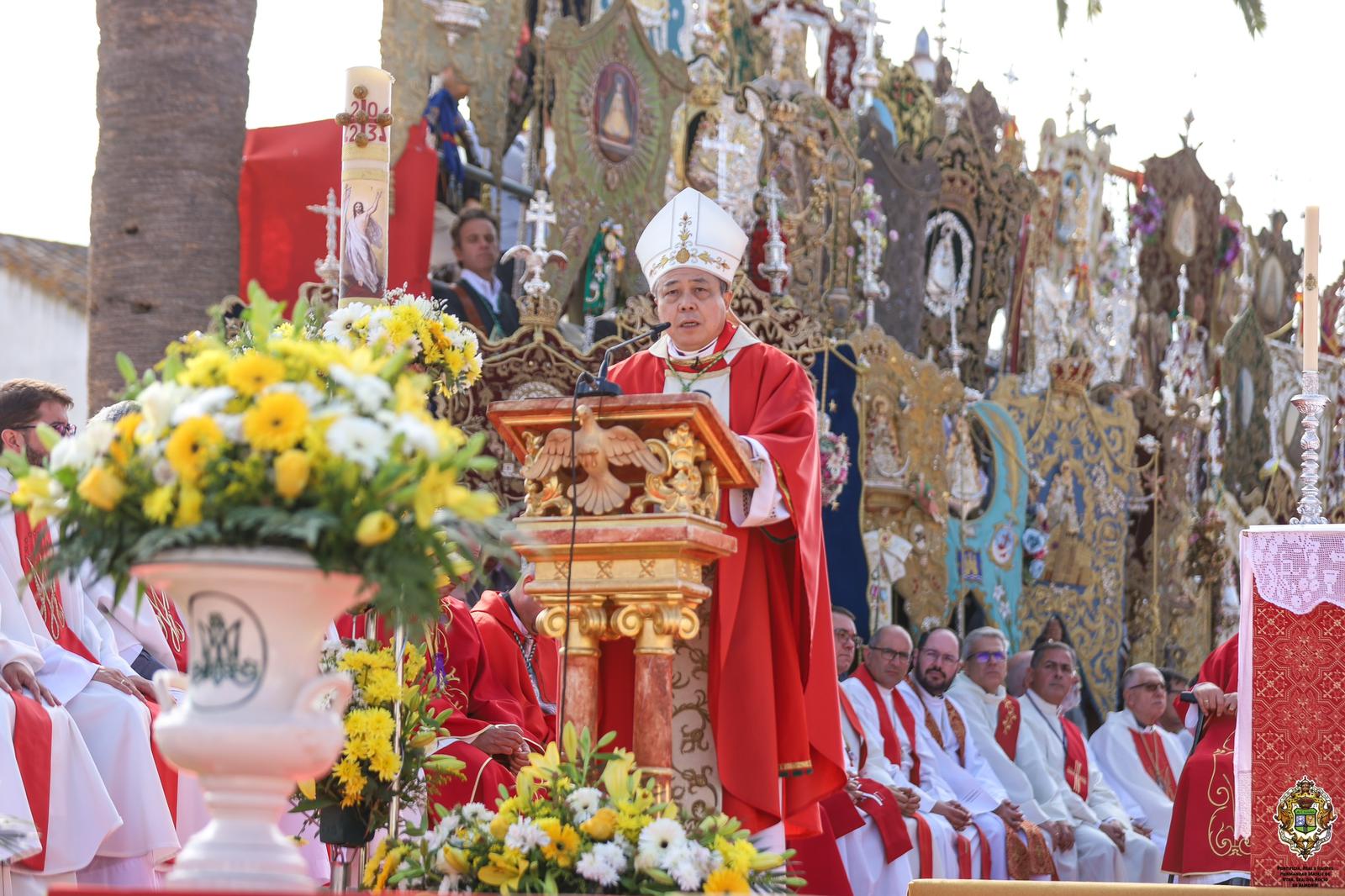 Solemne Misa Pontifical, a las 10 de la mañana, en el Real de El Rocío. presidida por el Excmo. y Rvdmo. Sr. D. Bernardito Cleopas Auza, Nuncio del Papa Francisco en España, que hará la homília, y concelebrada por el Excmo. y Rvdmo. Sr. D. Santiago Gómez Sierra, Obispo de Huelva y los capellanes de las hermandades del Rocío. Todas ellas asistirán con sus Simpecados e Insignias a esta Misa que estará acompañada musicalmente por el Coro de la Hermandad de Ntra. Sra. del Rocío de La Puebla del Río y la Orquesta Sinfónica de La Puebla del Río.