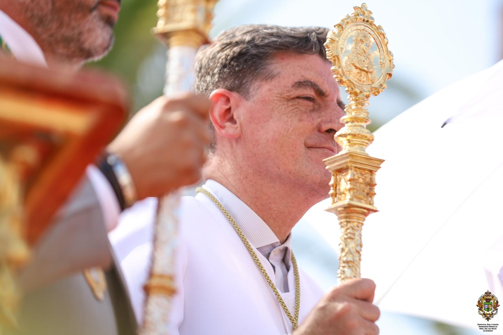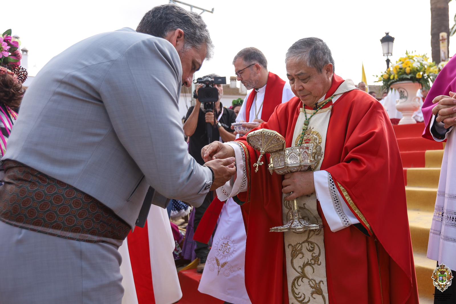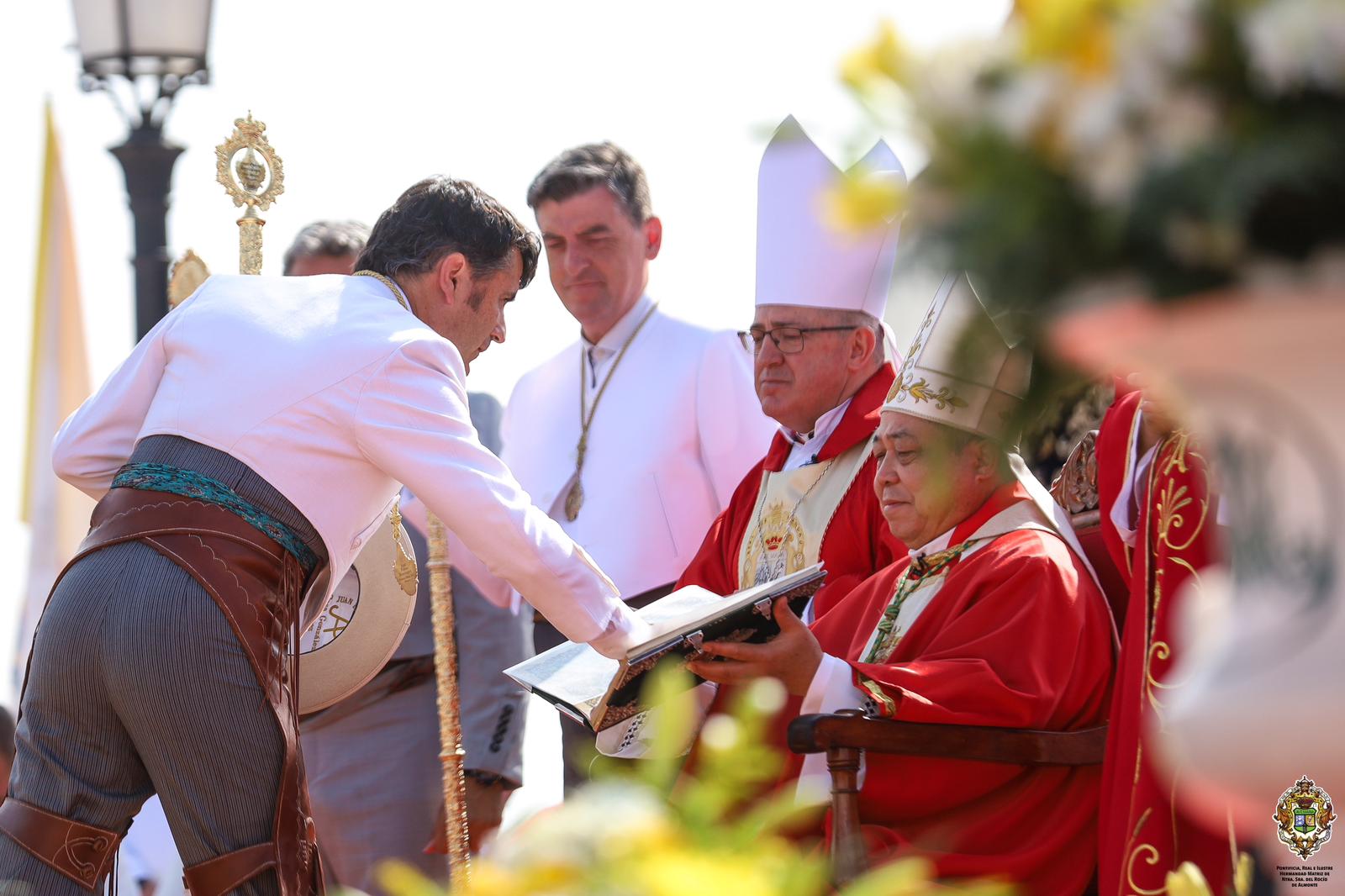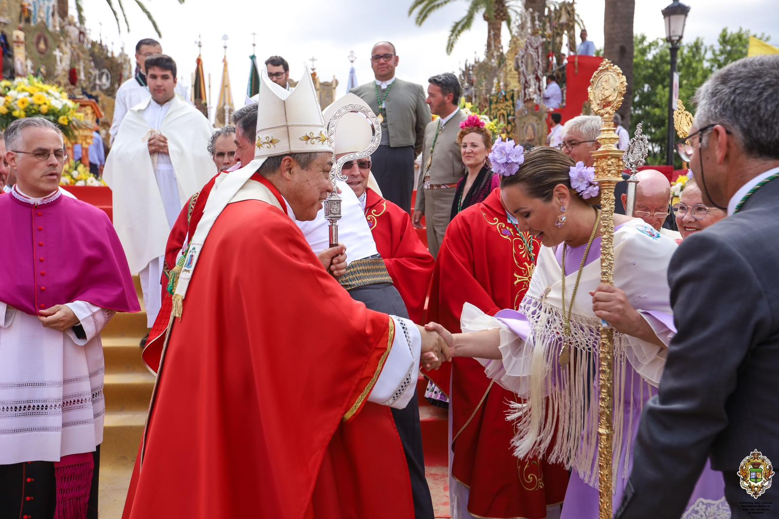 Solemne Misa Pontifical, a las 10 de la mañana, en el Real de El Rocío. presidida por el Excmo. y Rvdmo. Sr. D. Bernardito Cleopas Auza, Nuncio del Papa Francisco en España, que hará la homília, y concelebrada por el Excmo. y Rvdmo. Sr. D. Santiago Gómez Sierra, Obispo de Huelva y los capellanes de las hermandades del Rocío. Todas ellas asistirán con sus Simpecados e Insignias a esta Misa que estará acompañada musicalmente por el Coro de la Hermandad de Ntra. Sra. del Rocío de La Puebla del Río y la Orquesta Sinfónica de La Puebla del Río.