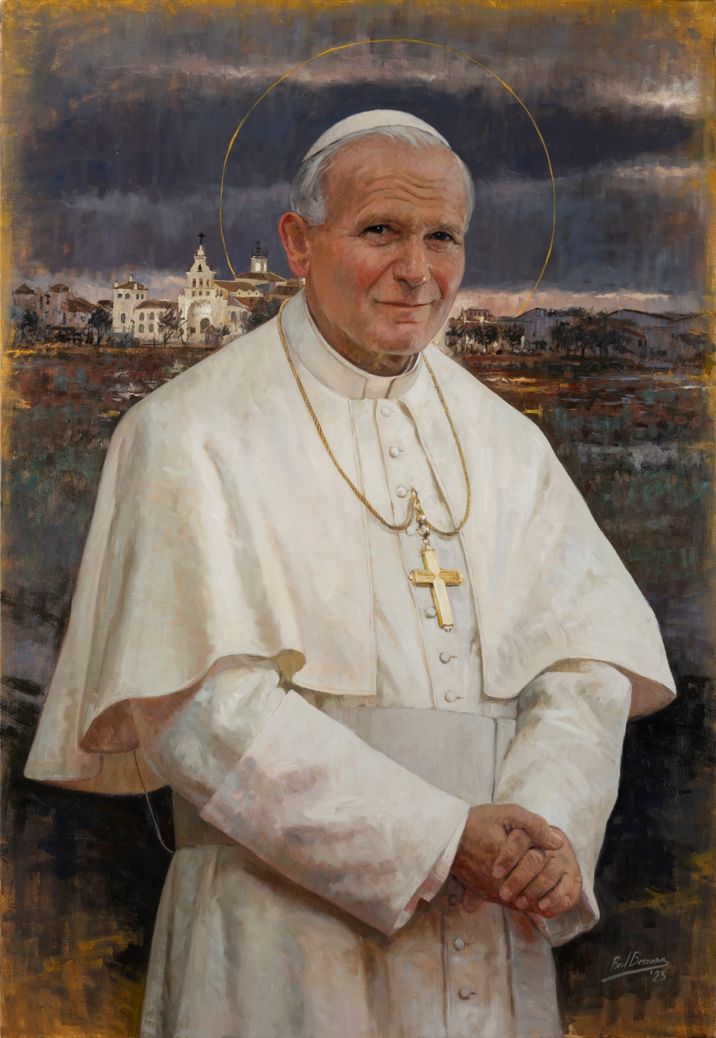 El retrato, bendecido ayer por el Sr. Nuncio de S.S. El Papa Francisco, D. Bernardito Cleopas, es obra de Raúl Berzosa y ha sido sufragado por las familias Bejarano Castrillo y Vela Vela. Desde ayer forma parte del ajuar litúrgico del Santuario del Rocío.