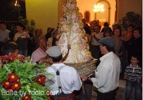 La noche jueves la imagen de la Virgen del Rocío que se venera en la ermita que le construyó expresamente su devoto Manuel Martínez Ros en El Raal, fue trasladada hasta el recinto ferial del Secano, donde está siendo velada todas las noches, al amor de una hoguera, y recibiendo los cultos tradicionales del rosario y cánticos de salves rocieras.