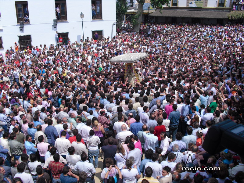 Los que saben rezar, rezan siempre que el nudo que se les forma en la garganta y las lágrimas lo dejen; los que no, los que somos hijos del campo, los que no sabemos de ciencias teológicas, pero sabemos amar y dar a cada uno lo que es suyo, nos aferramos a las andas del paso y allí derramamos el raudal de emociones que tenemos oculto, allí pedimos fe, que no nos falte la esperanza, que tengamos caridad, que seamos responsables en nuestros puestos de batalla, que haya justicia en el mundo, y paz y lumbre, y Dios por encima de todo; y allí le rezamos con los músculos, con las lágrimas, con la sangre, con el sudor, con la fatiga, deseosos de ser uno más de los que se cobijan bajo el manto misericordioso de esa Reina y Pastora que para los almonteños es Madre, Esposa y Hermana.