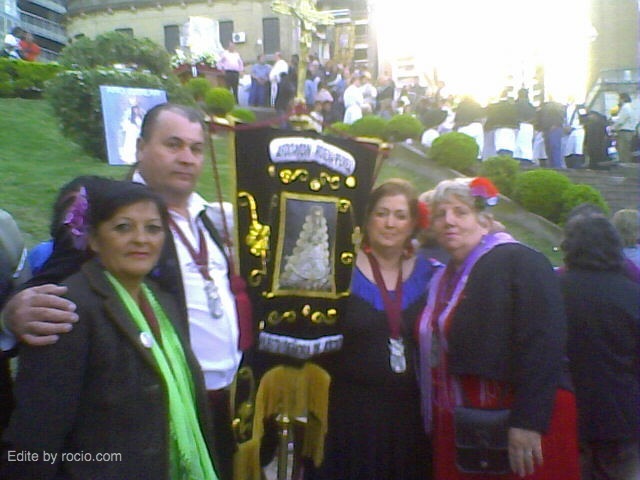 Integrantes de la comisión de la Asociacion de la Virgen del Rocío de Pérez en la  procesión y misa a la Virgen del  Rosario día 7 de octubre de 2009
