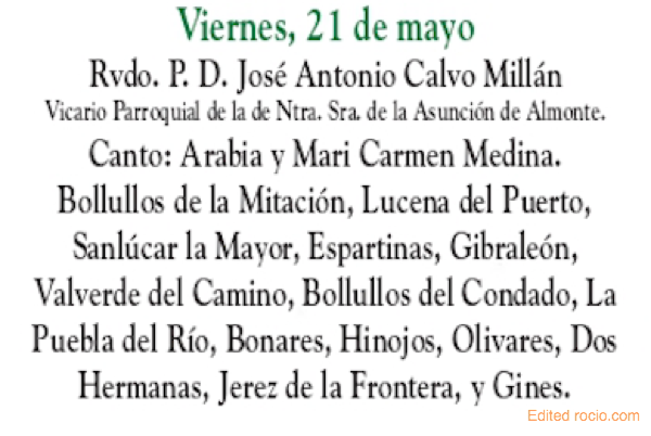 Puebla del Rio, Bonares, Hinojos, Olivares, Dos Hermanas, Jerez de la Frontera, Gines.
