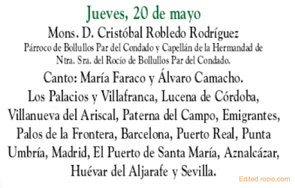 Novena a Ntra. Sra. la Virgen del Rocío – Séptimo día 20 de mayo de 2021 En Directo a partir de las 20,30 horas.