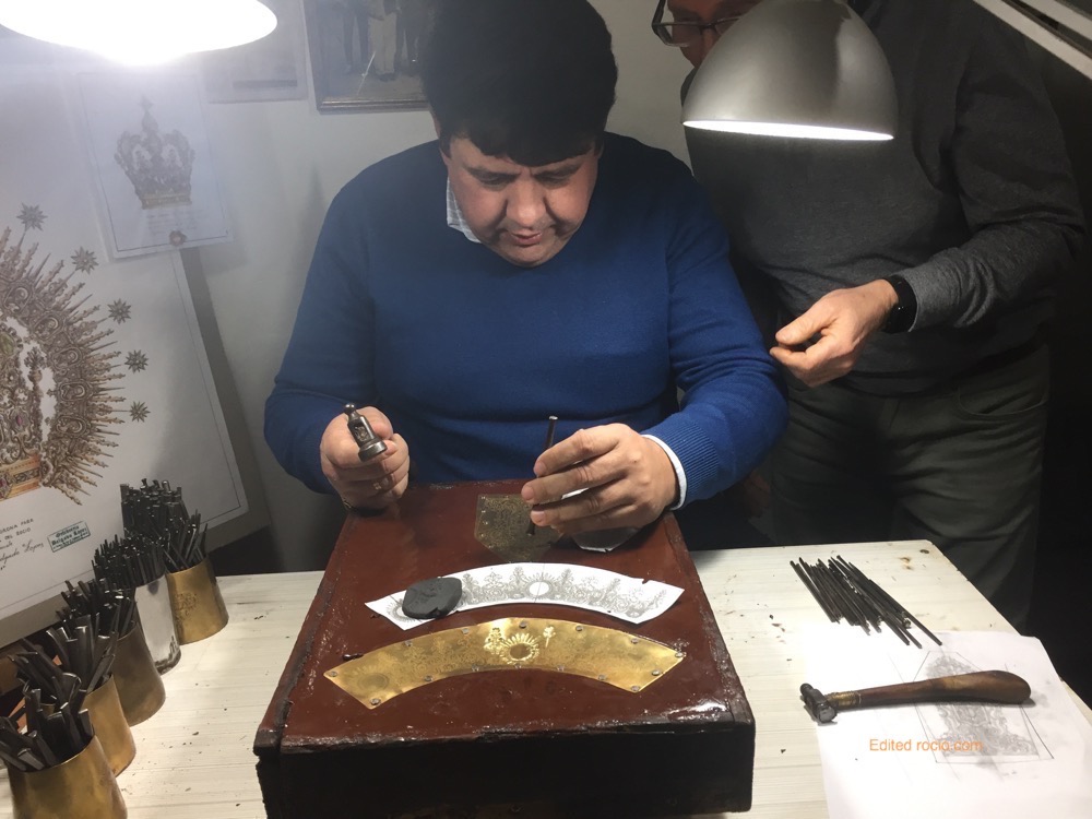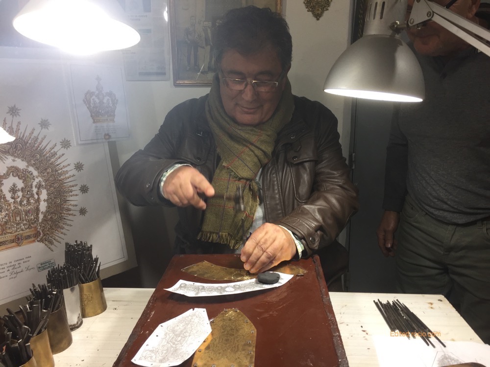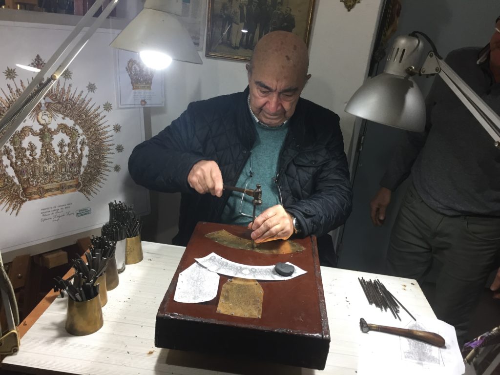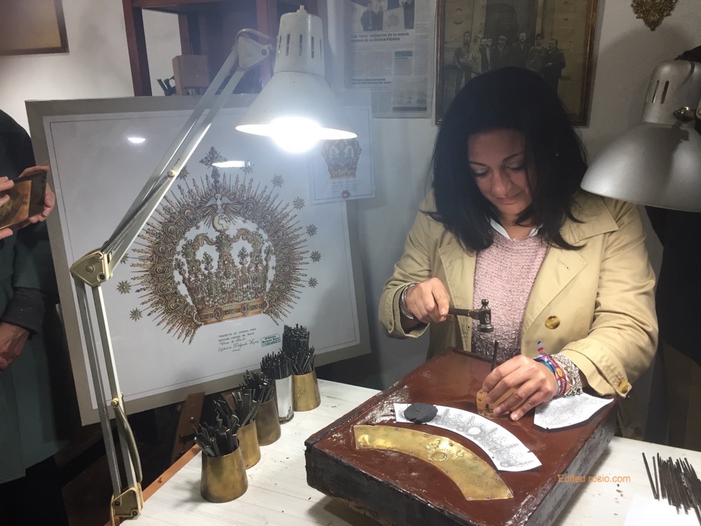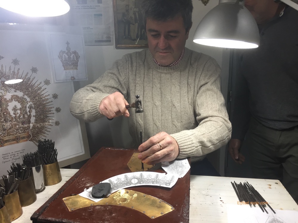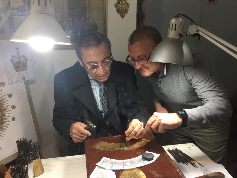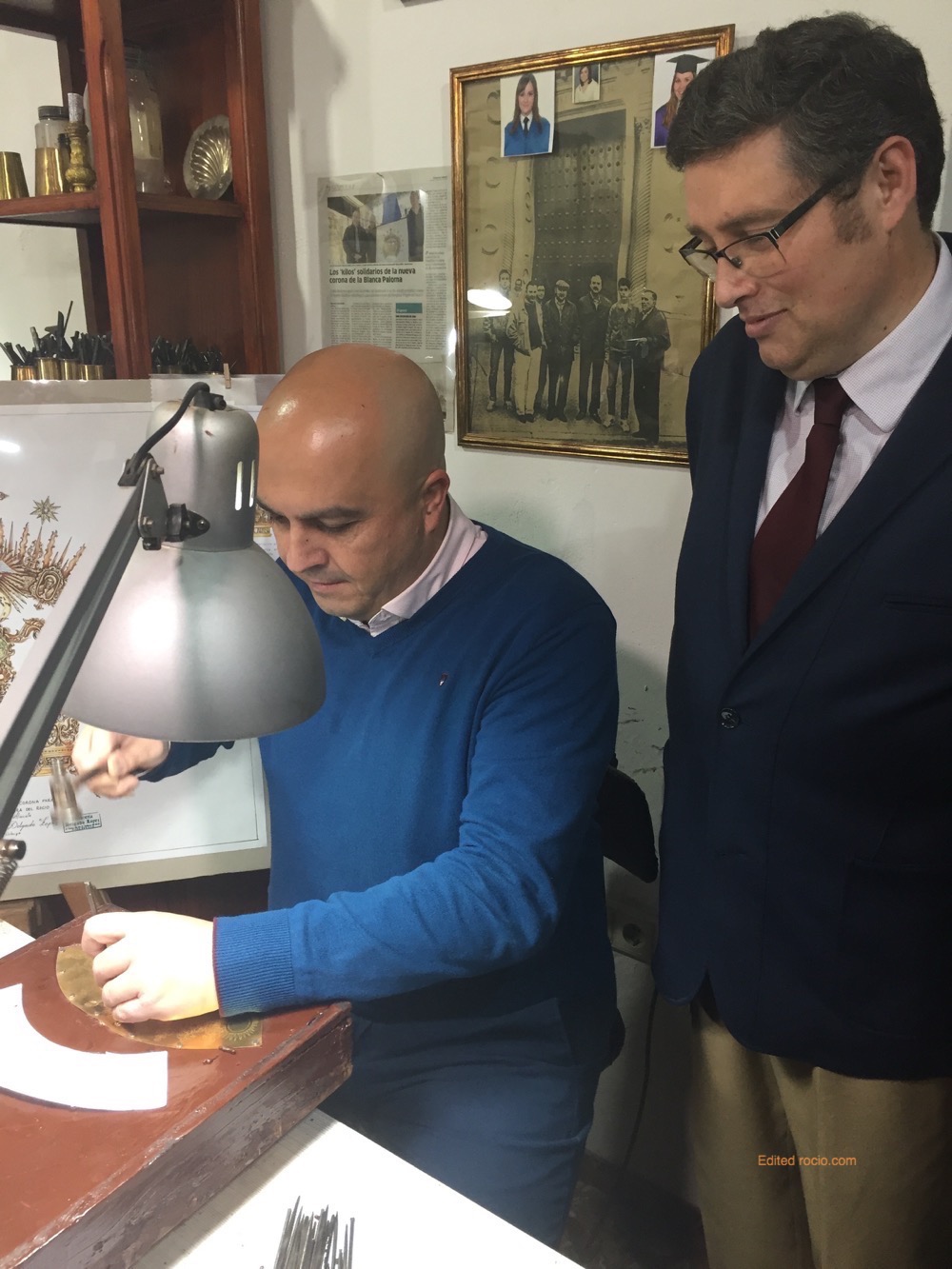 D. Luis Fernando Morian Prado, presidente de la Comisión de las Hermandades y Asociaciones del Rocío cincelando la Corona del Pastorcito