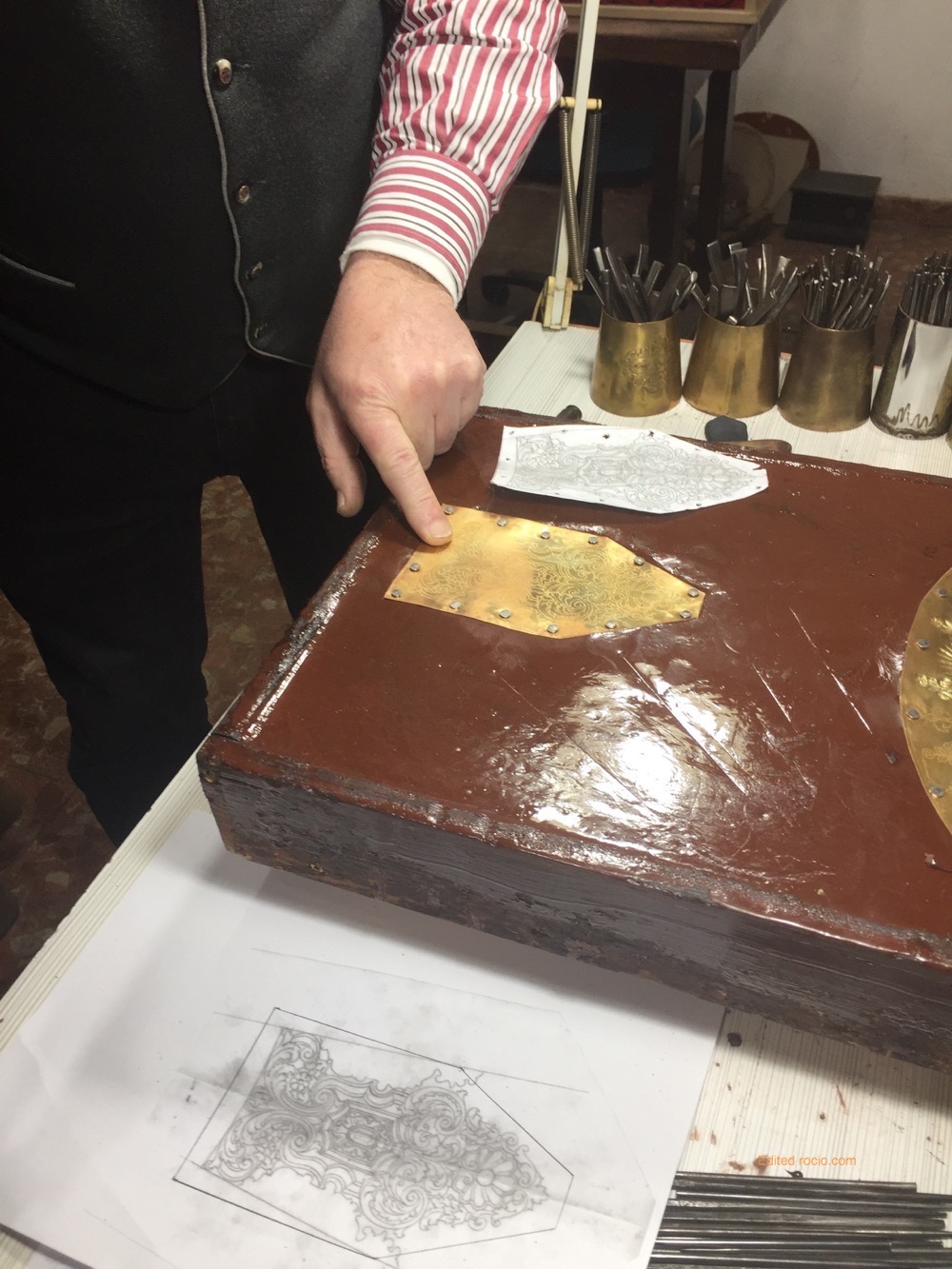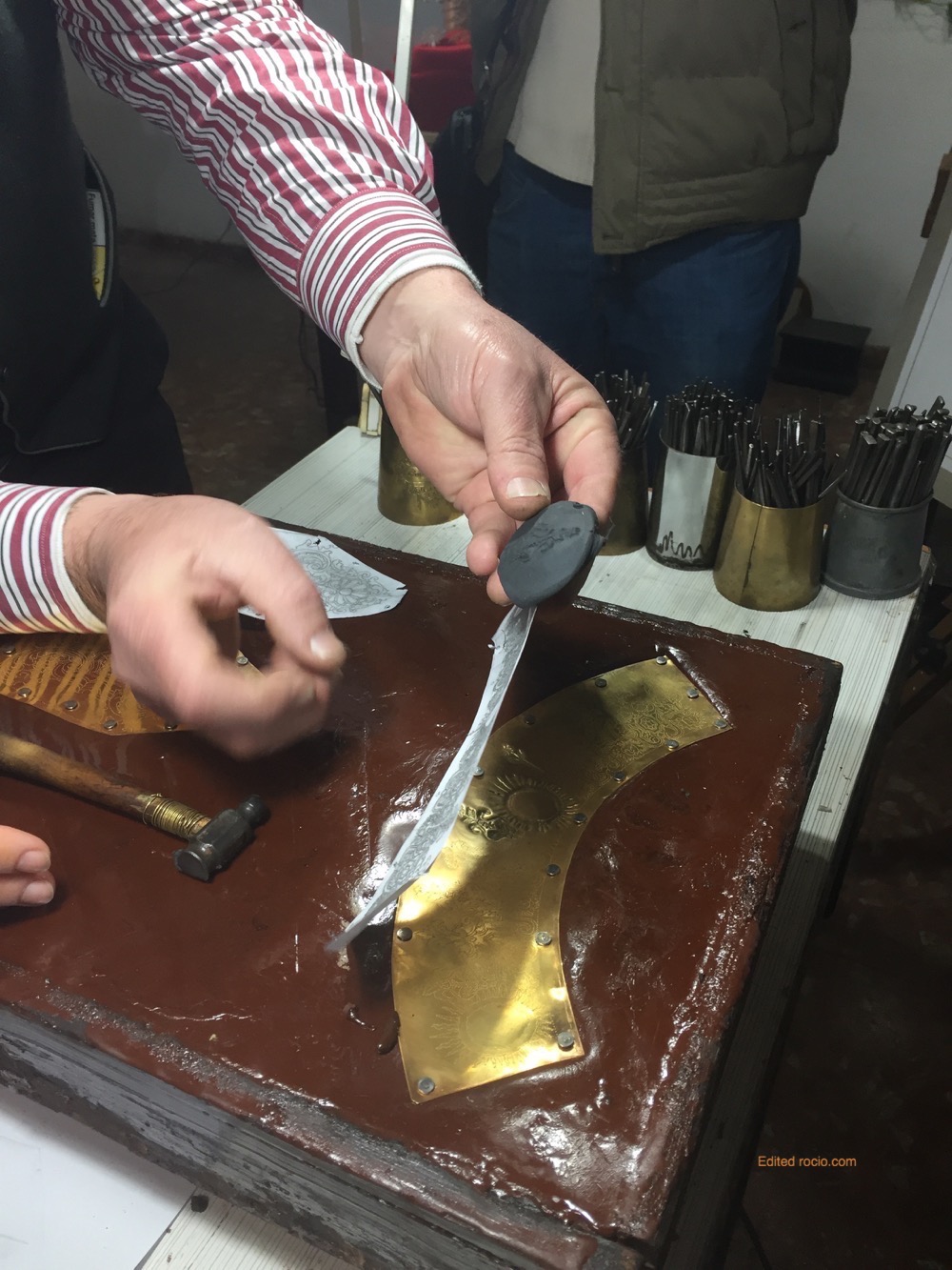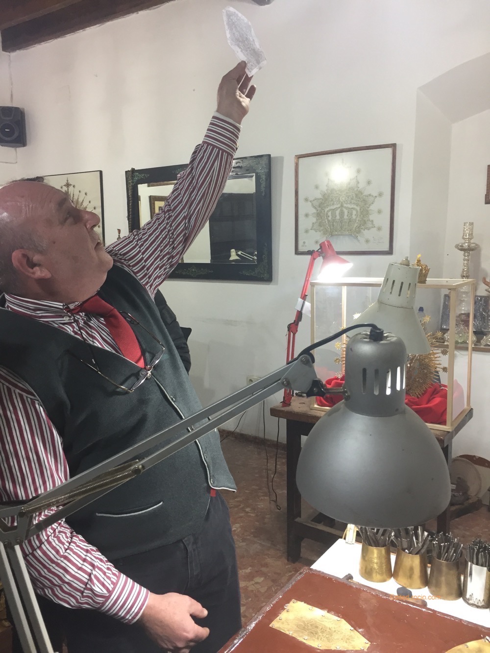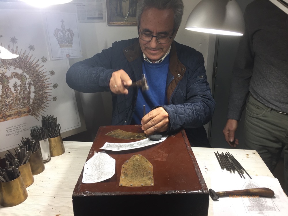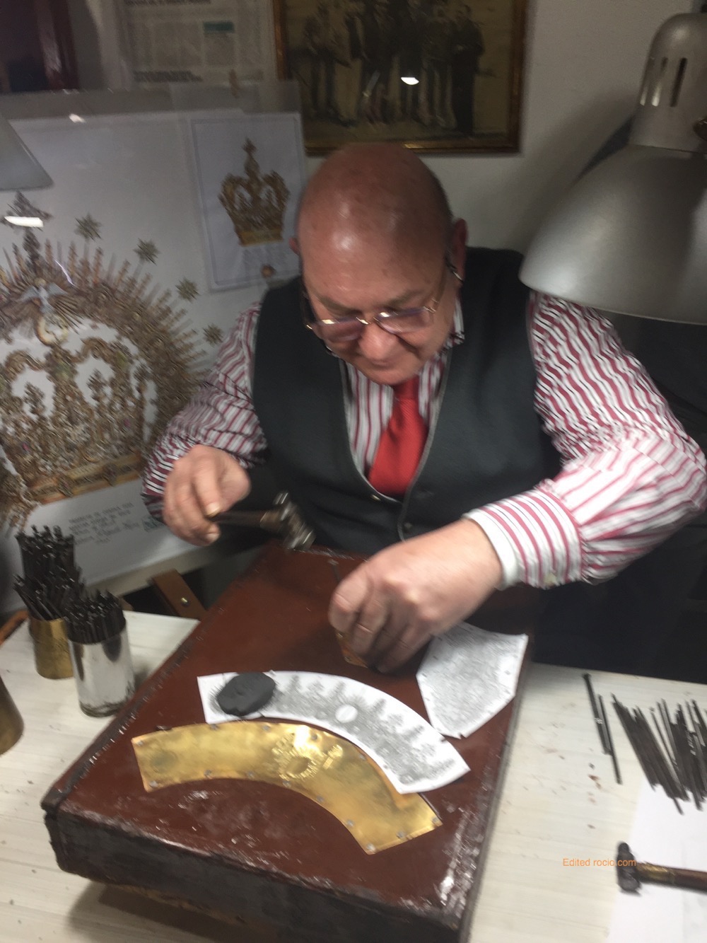 D. Luis Fernando Morian Prado, presidente de la Comisión de las Hermandades y Asociaciones del Rocío cincelando la Corona del Pastorcito