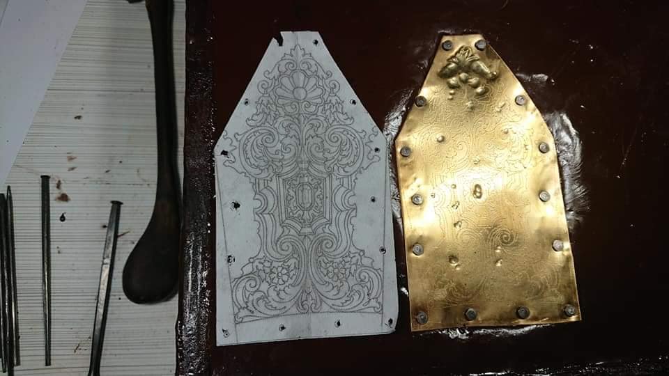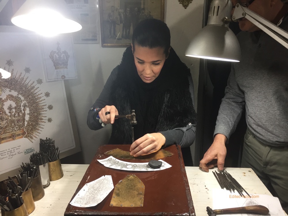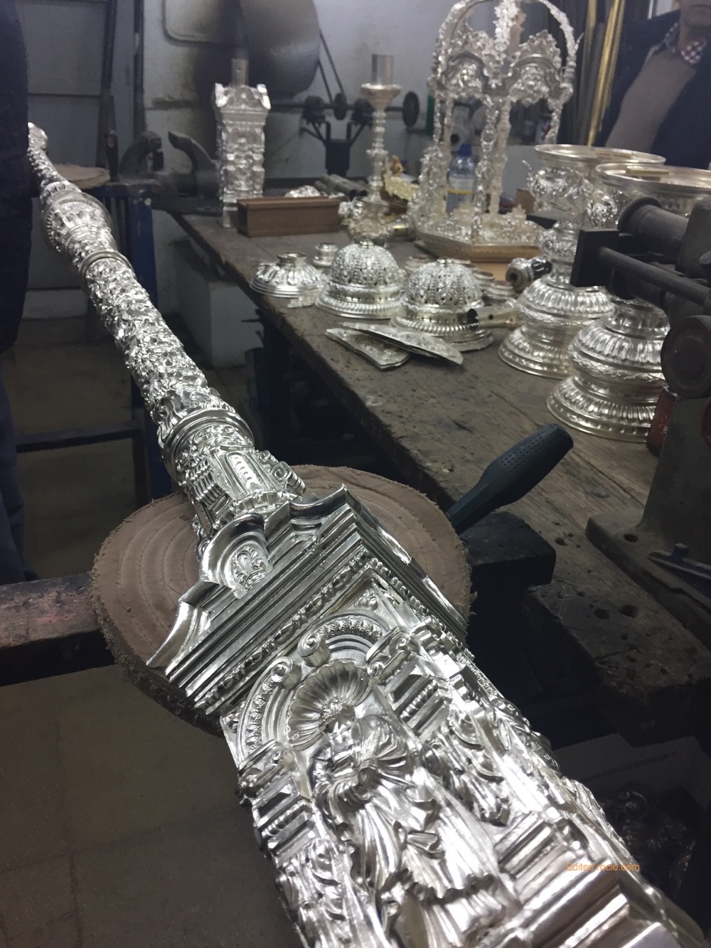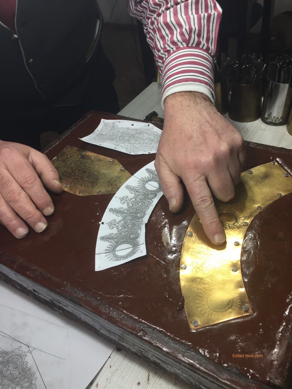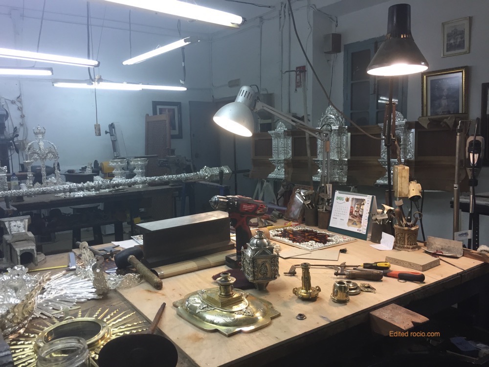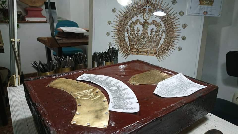En la tarde de hoy, jueves 24 de enero, a las 20 h, ha tenido lugar en Sevilla, en el taller de Orfebreria de los hermanos Delgado López, donde se están realizando las coronas de la Santísima Virgen del Rocío y su Hijo el Pastorcillo Divino, con motivo del centenario de la coronación canónica, el acto simbólico del primer toque de cincel en las dichas preseas.
