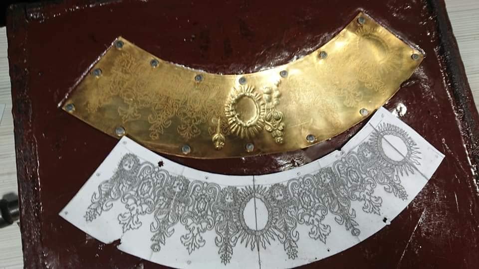 El Presidente de la Matriz, Don Juan Ignacio Reales Espina cincelando la Corona del Pastorcito