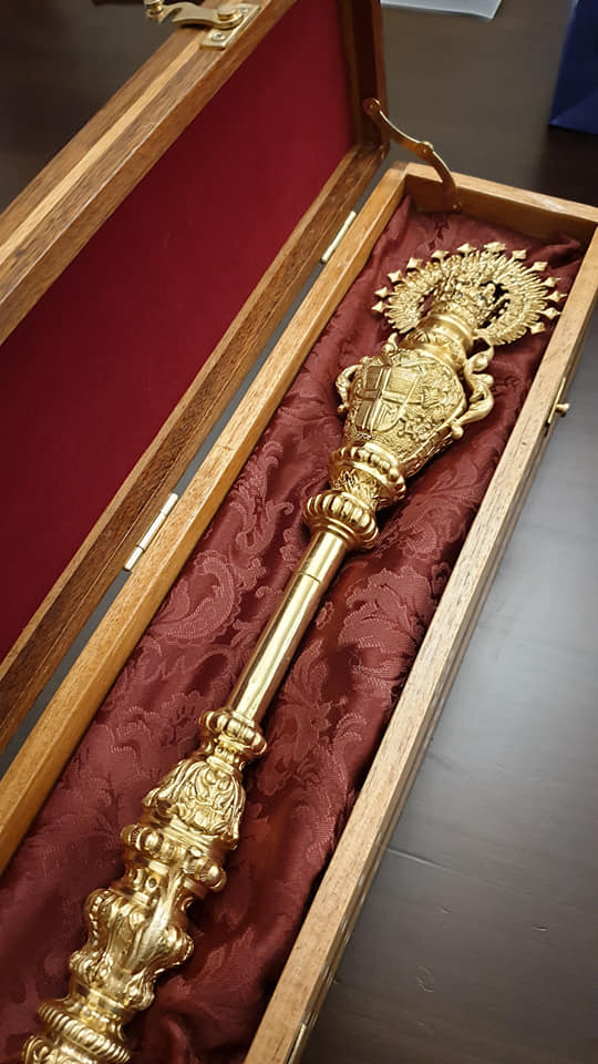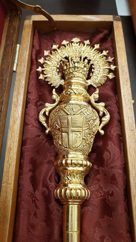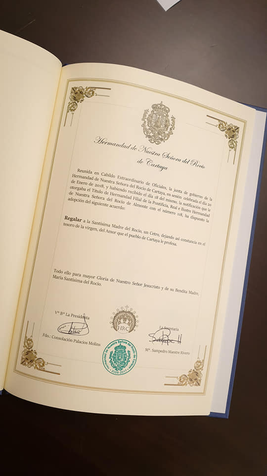 El pasado domingo la Hermandad del Rocío de Cartaya, coincidiendo con su peregrinación anual, entregó un cetro a la Virgen del Rocío, según expresaban, «para dejar constancia del amor que el pueblo de Cartaya le profesa».