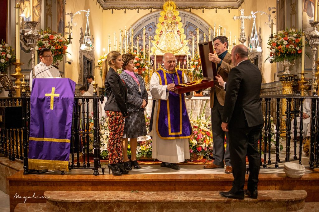 Ayer, en la sabatina, recibimos la donación de un nuevo rostrillo para la Virgen del Rocío, de manos de la familia Muñoz Merino. Ricardo, María y Abel, de Sanlúcar de Barrameda.