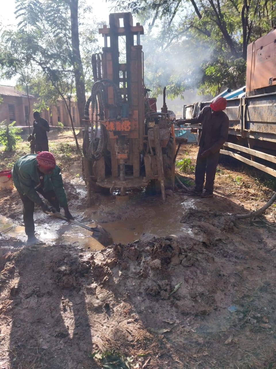 También se ha perforado el pozo, después de los estudios pertinentes para localizar el lugar más adecuado. Se ha asegurado el suministro de agua suficiente y de calidad a la profundidad de 35 metros. Ya está manando.