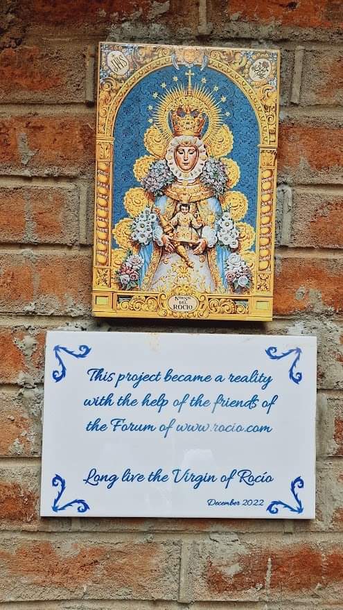 En el bloque de letrinas se ha colocado el azulejo conmemorativo y el de la Virgen del Rocío.