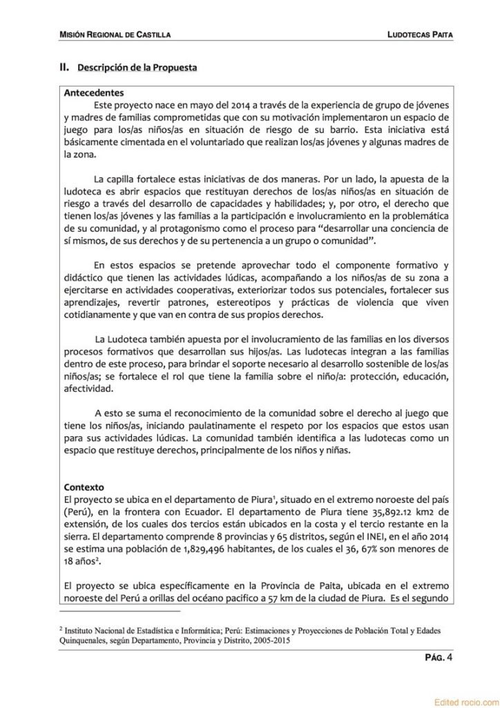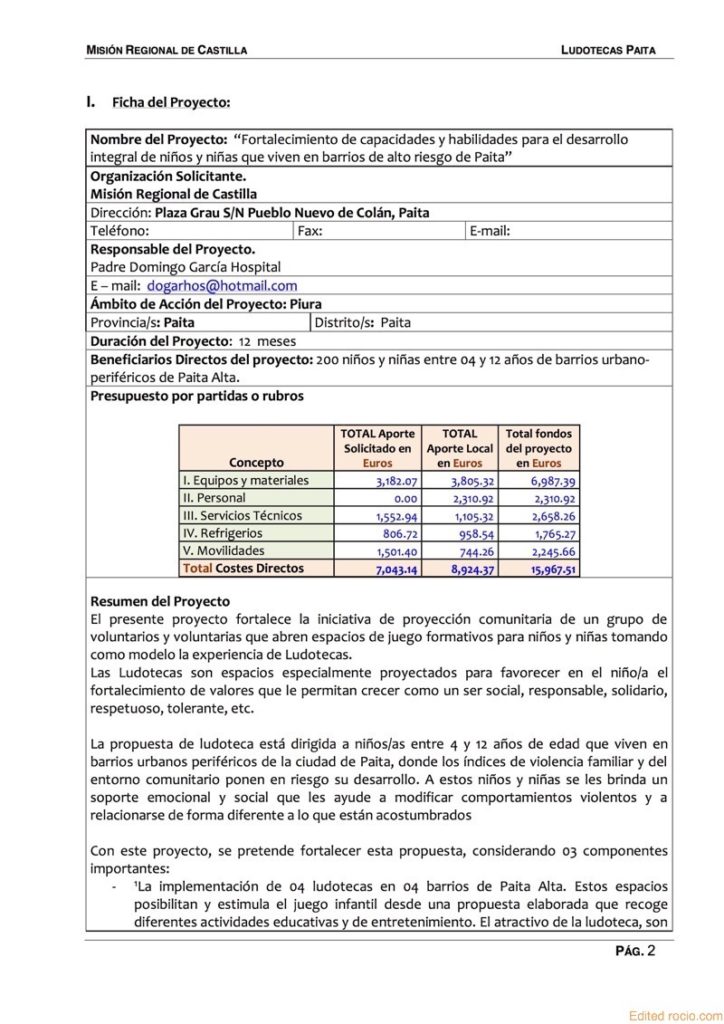 El Padre Domingo nos mantendrá informados de todo cuanto necesitemos saber, de cuantas dudas nos puedan surgir. Adjunto proyecto enviado por él.