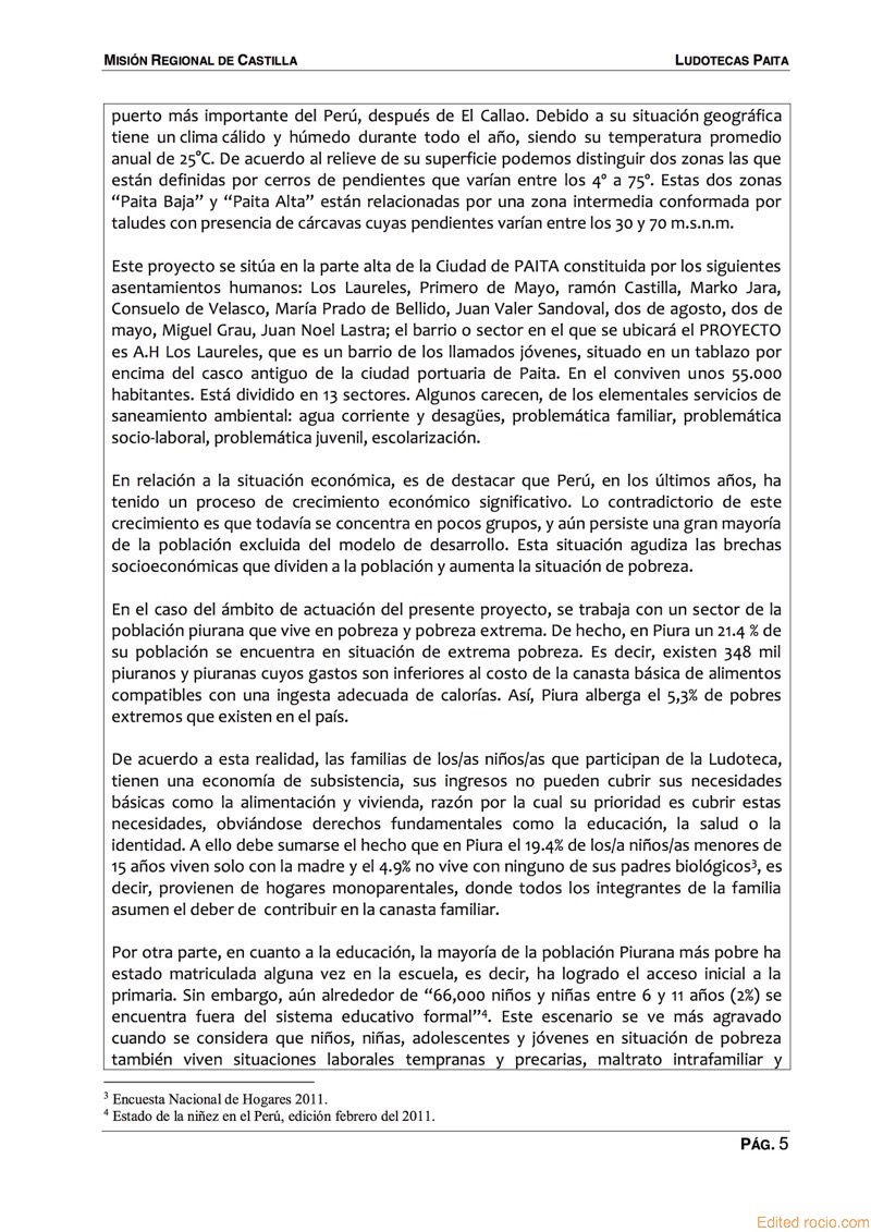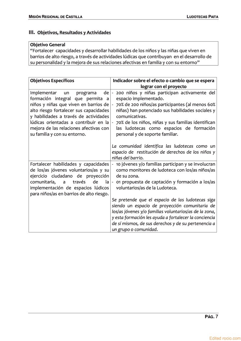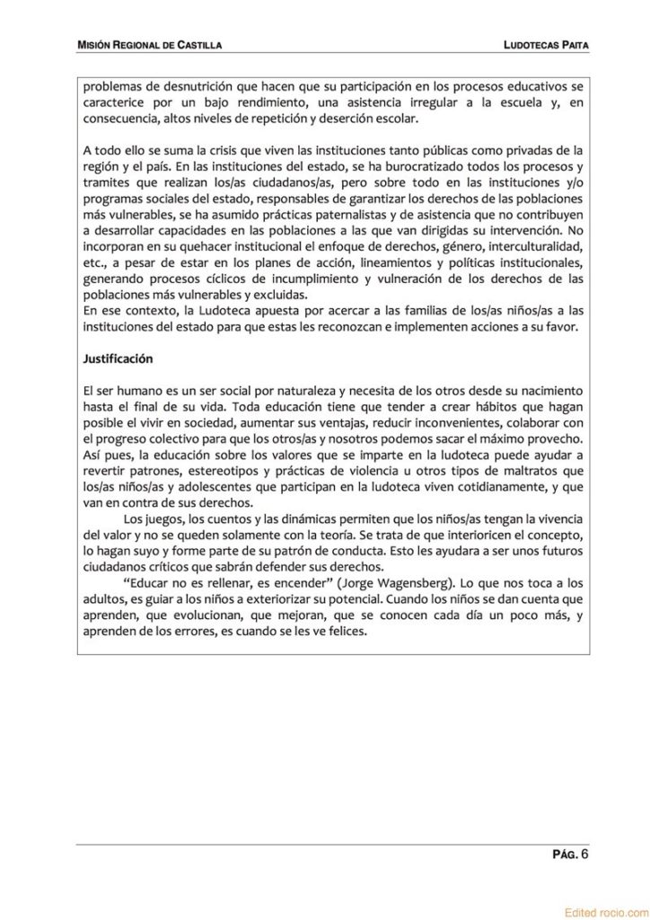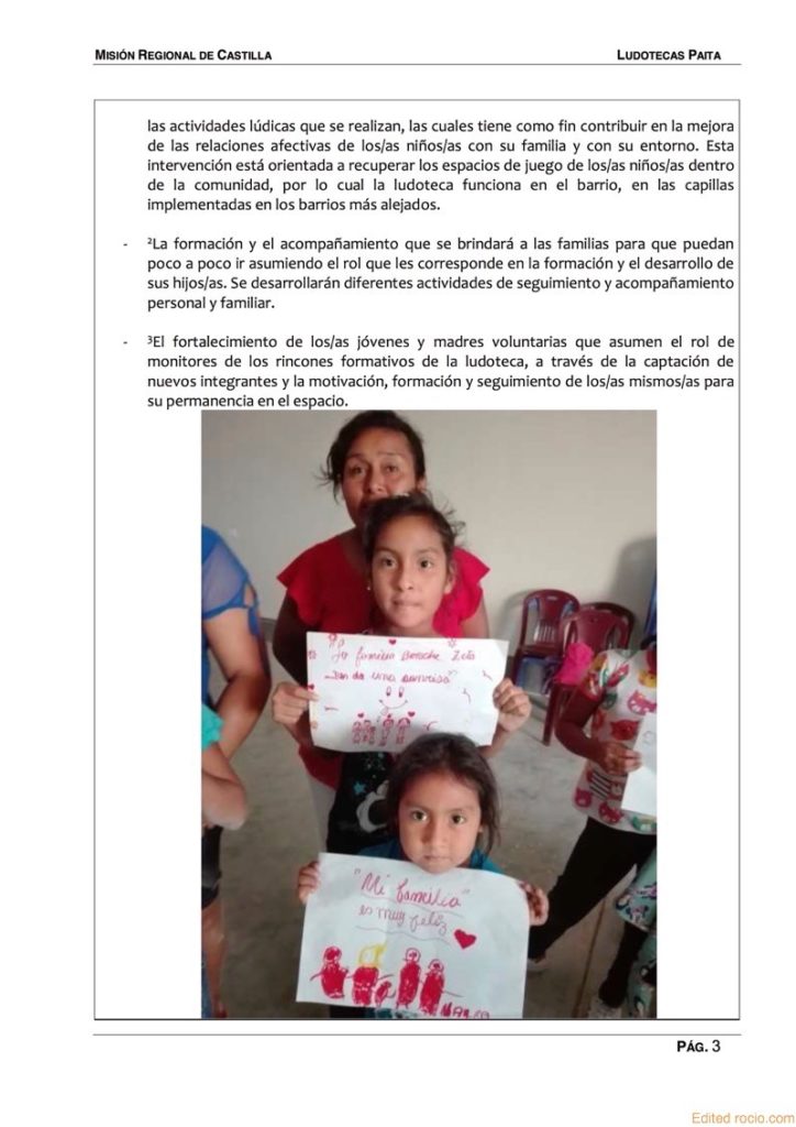 Proyecto: “Fortalecimiento de capacidades y habilidades para el desarrollo integral de niños y niñas que viven en barrios de alto riesgo de Paita Alta”