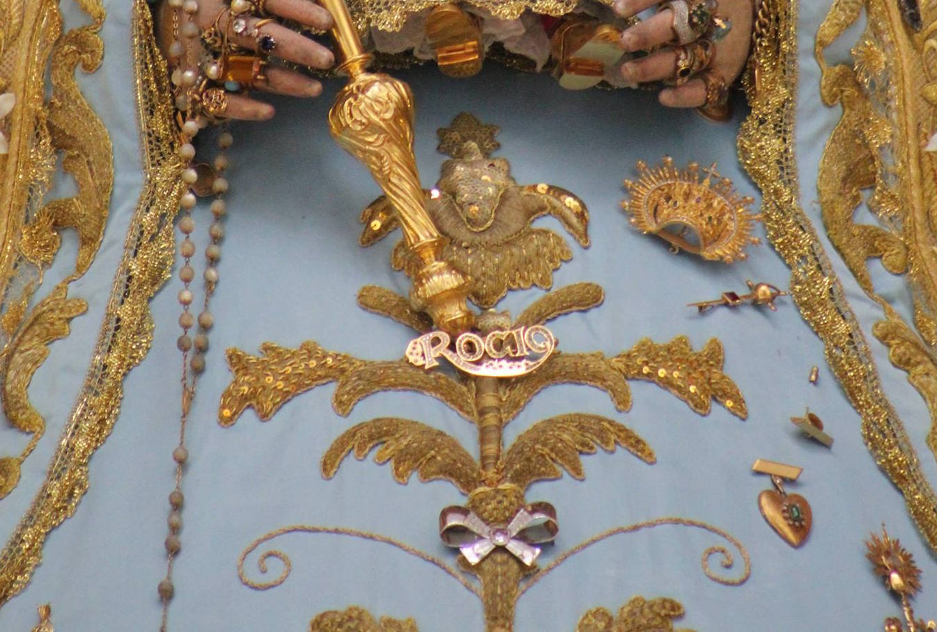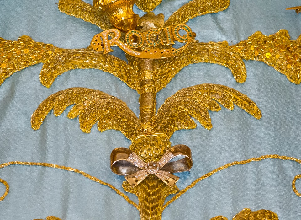 Ntra. Sra. luce, en esta entrega, el Lazo Blanco que el Foro del Rocío le regaló en el año 2003.