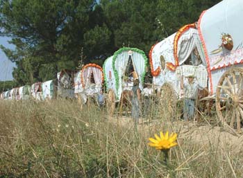 Ello explica que en la película se incluyan imágenes de la procesión del lunes y el último traslado de la Virgen a Almonte. También se dedican secuencias al tránsito de las hermandades filiales hasta la aldea, procedentes de los caminos de Huelva, Sevilla Cádiz, así como actos tan entrañables como la candelaria y los que tienen lugar durante la romería. La noche, una pará en el camino, un mosaico completo de momentos rocieros encuentran sitio en esta proyección.