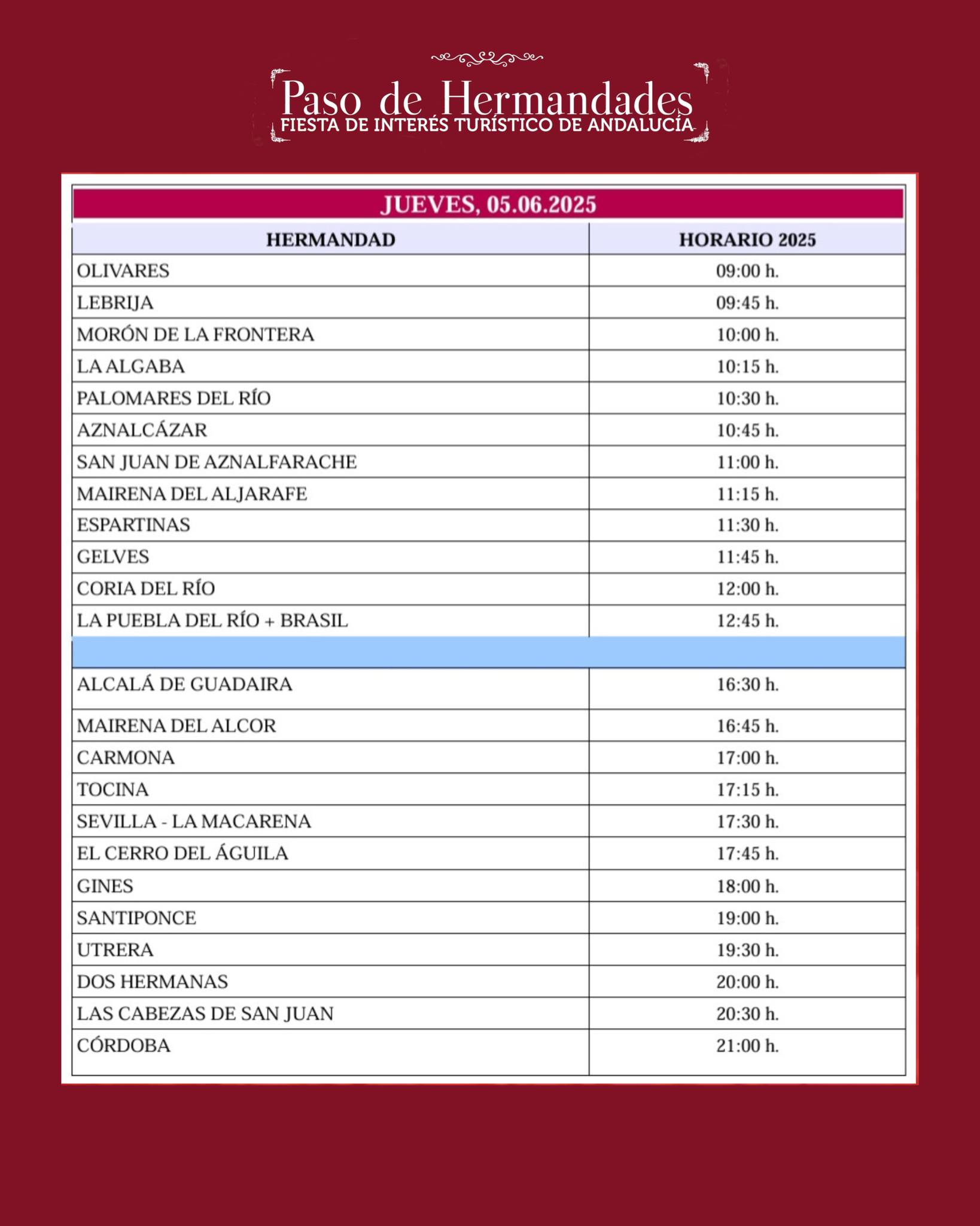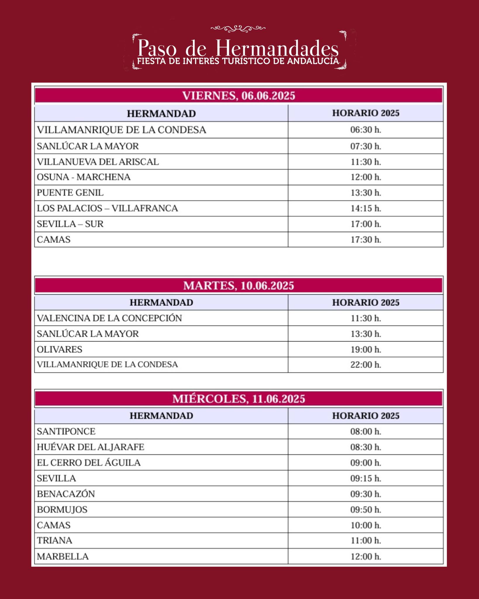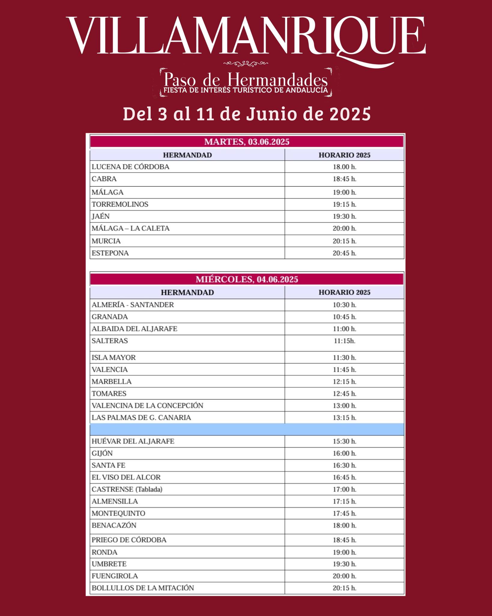 HERMANDAD HORARIO 2025
