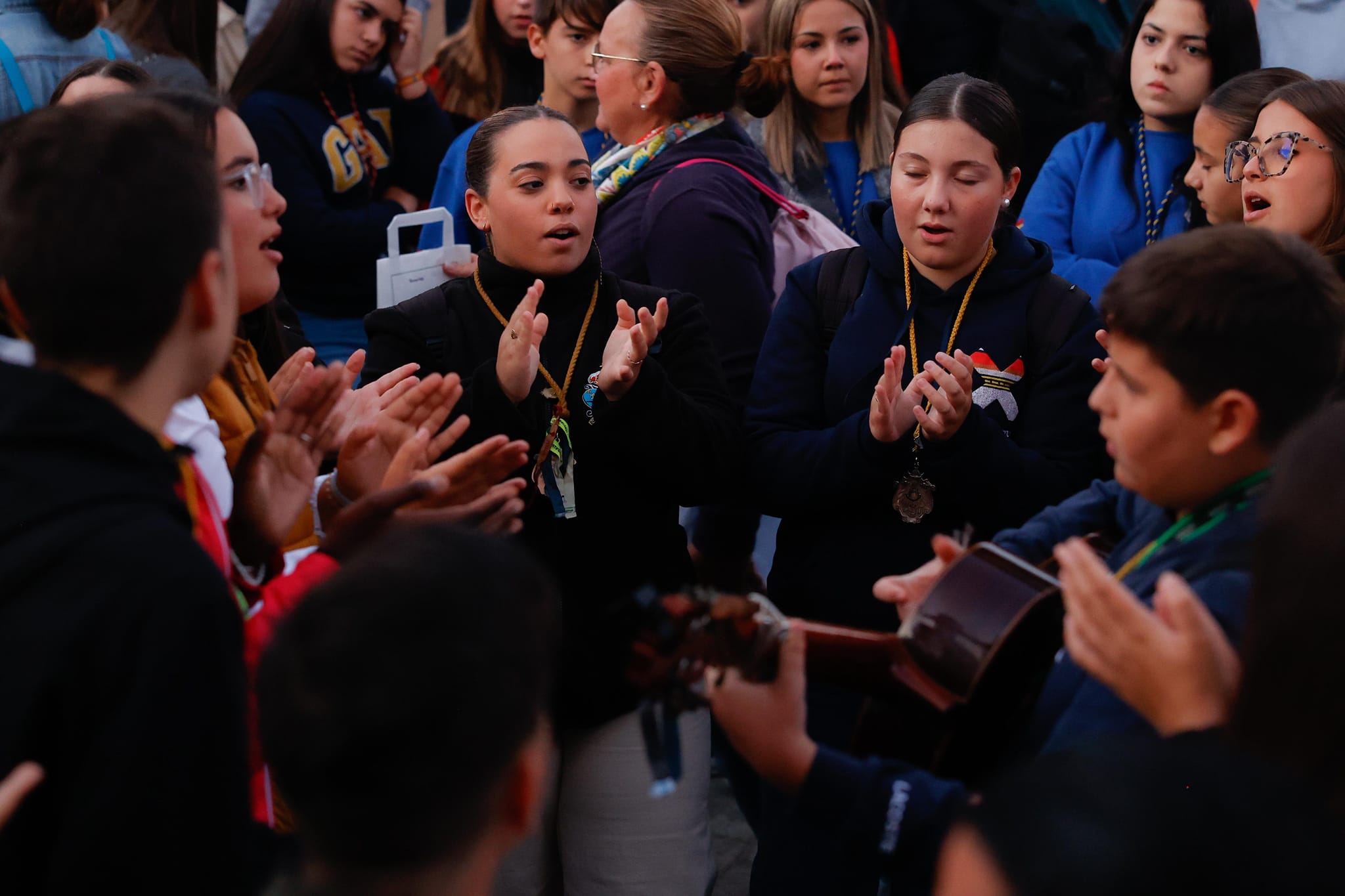 En el mediodía, el rezo del Ángelus, dirigido por el Cardenal Ángel Fernández Artime, quien peregrinó también con los jóvenes, fue uno de los momentos más especiales de la jornada. Hasta este punto del camino se acercaron los usuarios de la Residencia El Pastorcito, que acoge a personas con discapacidad intelectual, y quienes pudieron compartir un rato de oración, fraternidad y alegría con los peregrinos más jóvenes.
