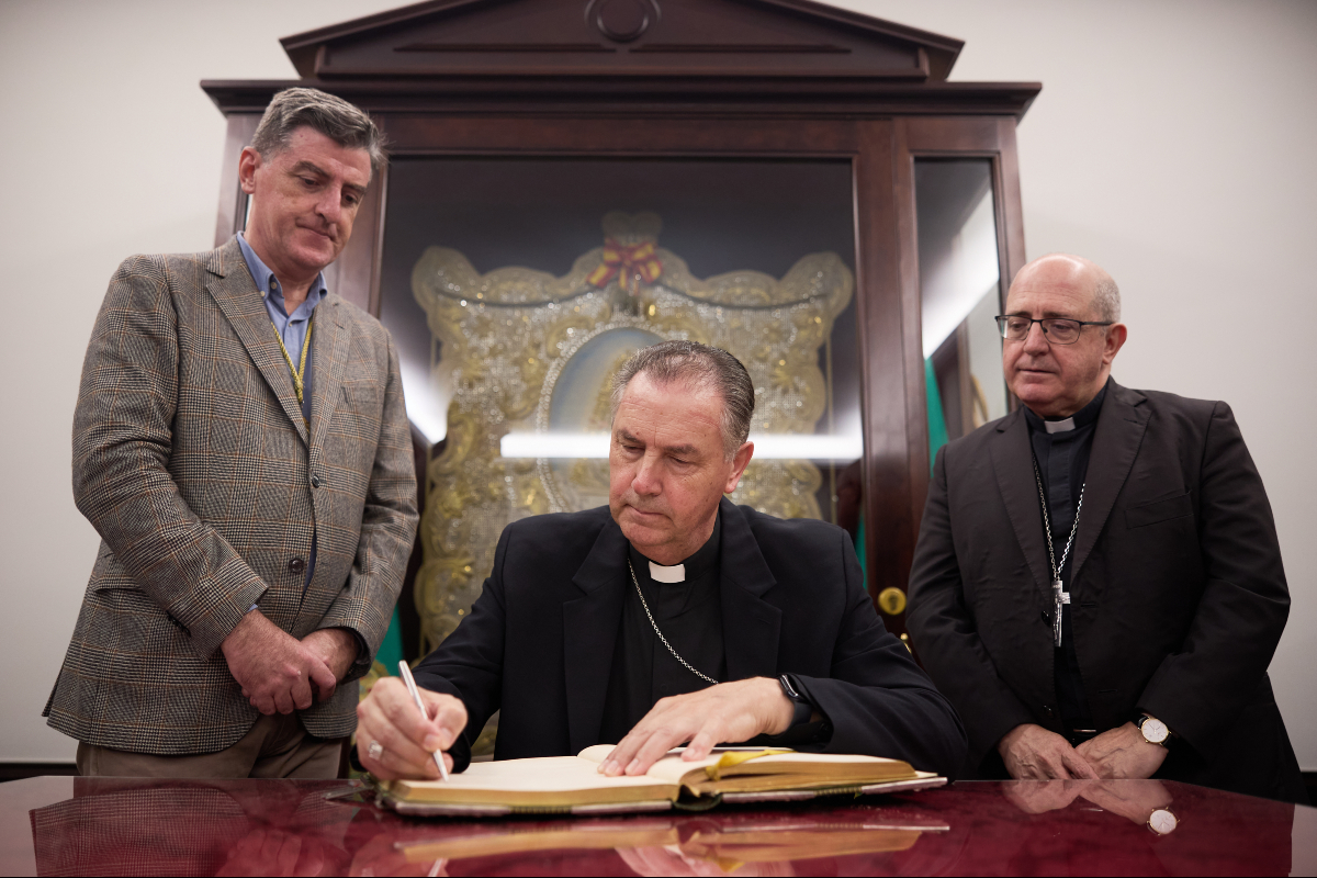 Como testimonio de su visita al Santuario de Ntra. Sra. del Rocío, ayer el Cardenal Fernández Artime, sucesor de Don Bosco, firmó en el Libro de Honor de la Hermandad Matriz. Gracias por participar de la #PeregrinaciónJóvenesRocieros y oficiar la Sabatina a la Virgen. Gratitud que hacemos extensiva a nuestro Obispo, D. Santiago Gómez, por acompañarnos.