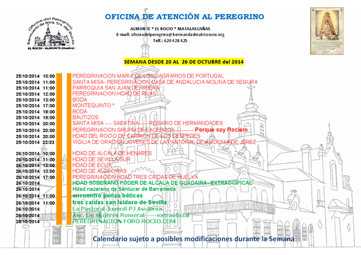 Peregrinaciones extraordinarias del sábado 25 y domingo 26 de octubre de 2014