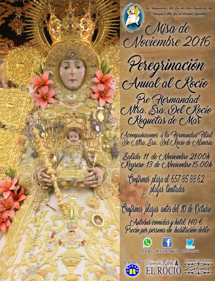 Recordamos que mañana finaliza el plazo para reservar la peregrinación al Rocío los días 11, 12, y 13 de Noviembre con la Pre Hermandad de Ntra Sra Del Rocio De Roquetas de Mar solicita mas información al 657 85 88 62 plazas limitadas.