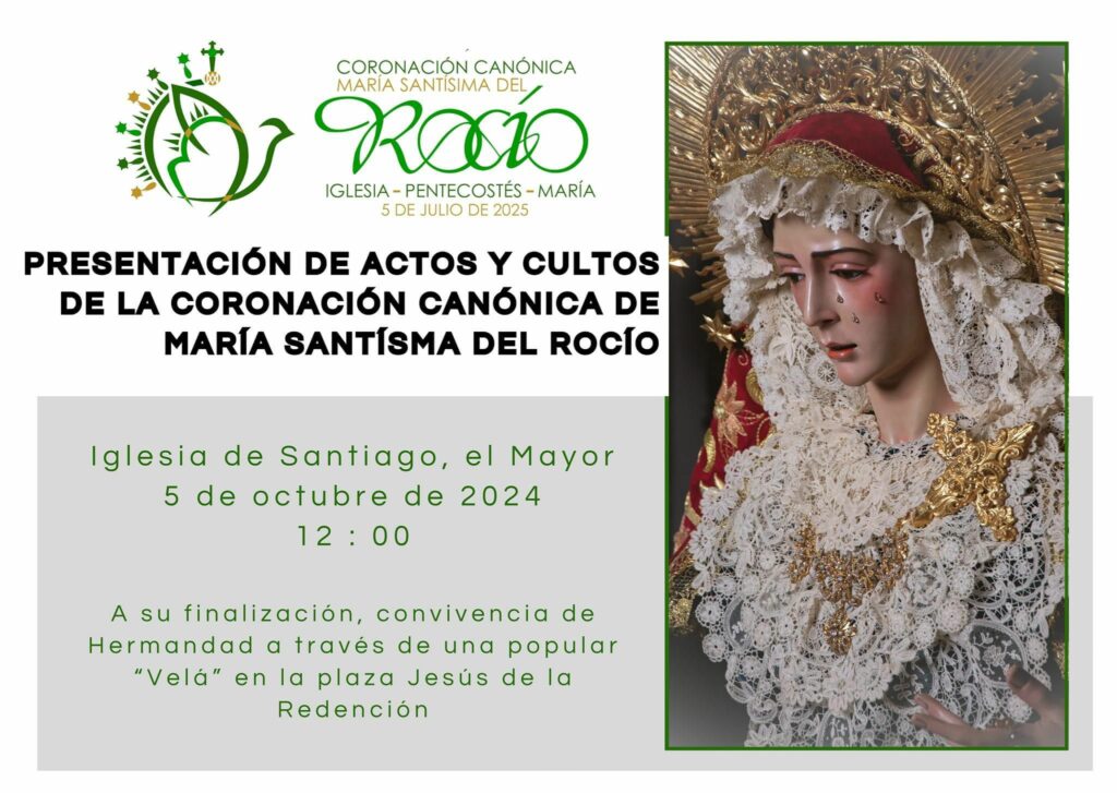 En la Iglesia de Santiago, el Mayor, en la plaza Jesús de la Redención, en el barrio de Santa Catalina de Sevilla, se presentan los Actos y Cultos de la Coronación Canónica de Mª Santísima del Rocío.