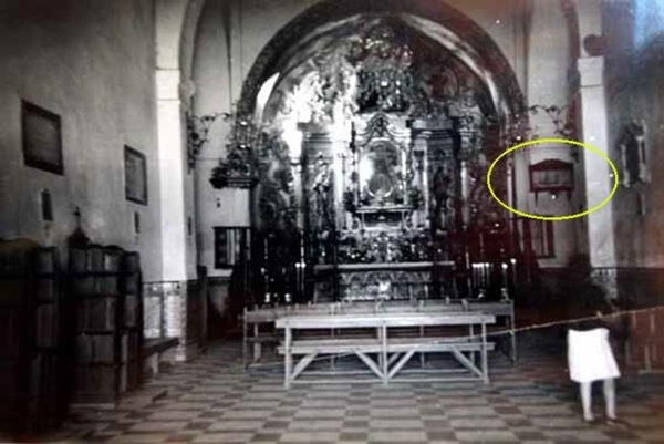 También de recuerdo de los que conocieron la anterior Ermita y más concretamente en el pilar del lado derecho del presbiterio, existían unos pescantes de forja, que se adornan con el escudo real de la casa de Francia, sosteniendo una gran vitrina que guardaba uno de los más interesantes y significativos exvotos reales del santuario del Rocío: la réplica de la corbeta “Belgique” ; del escudo colgaba con una cadenilla una placa de plata que decía: