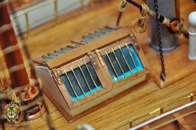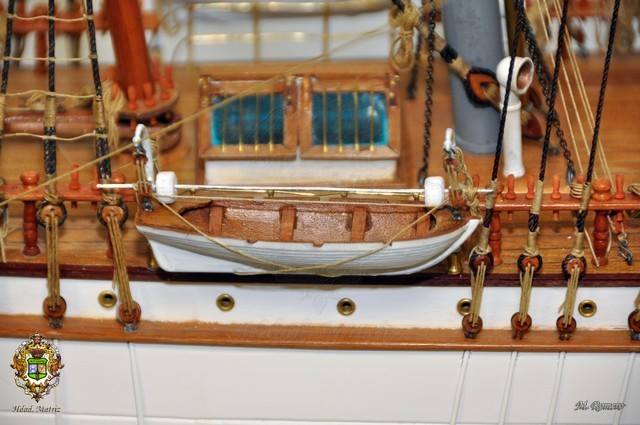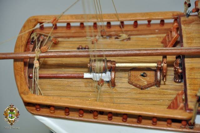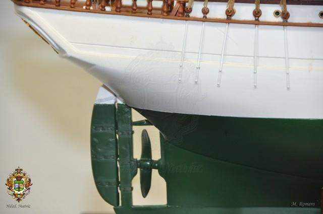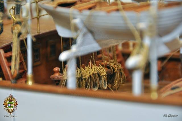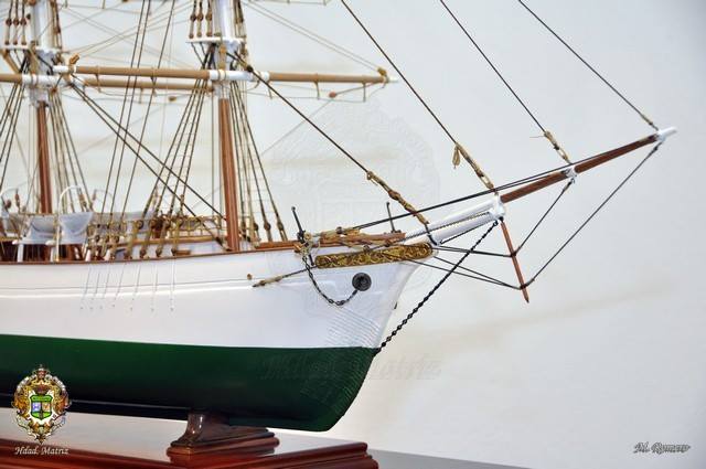 El magnífico trabajo de restauración de la maqueta, ha sido llevado a cabo por el modelista naval, D. Luciano Benjumea Älvarez, (Herrera-Sevilla, 1940), que lleva más de 60 años, fabricando maquetas en su “astillero de la sierra sur de Sevilla”.