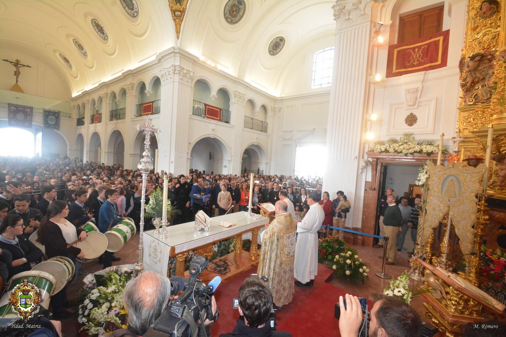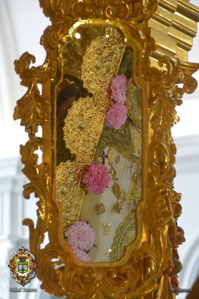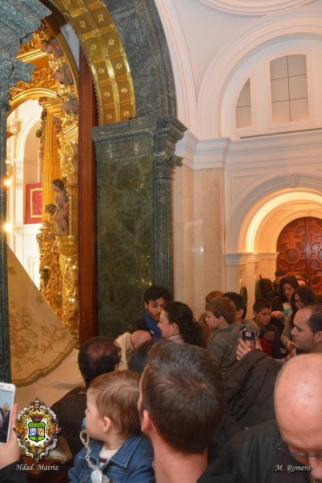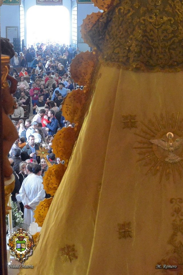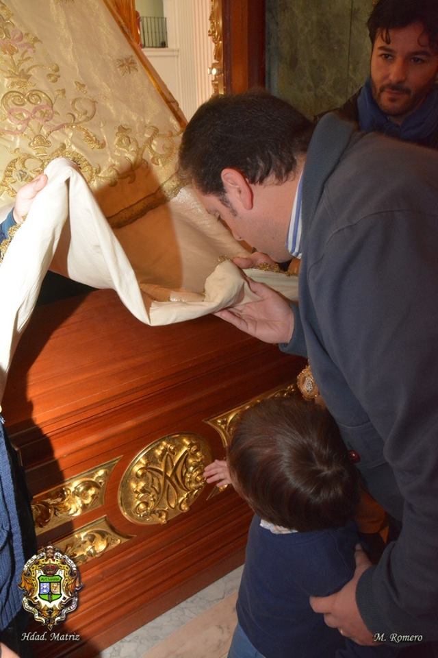 Tras la bienvenida y bendición por parte del Sr. Rector del Santuario, Rvdo. D. Francisco J. Martín Sirgo, los niños, acompañados por sus padres subieron al Camarín de Nuestra Señora, donde las Hermanas Camaristas les impusieron el manto y pudieron contemplar la belleza de la Señora, reflejada en los sendos espejos que permiten una visión de tan Sereno Perfil.