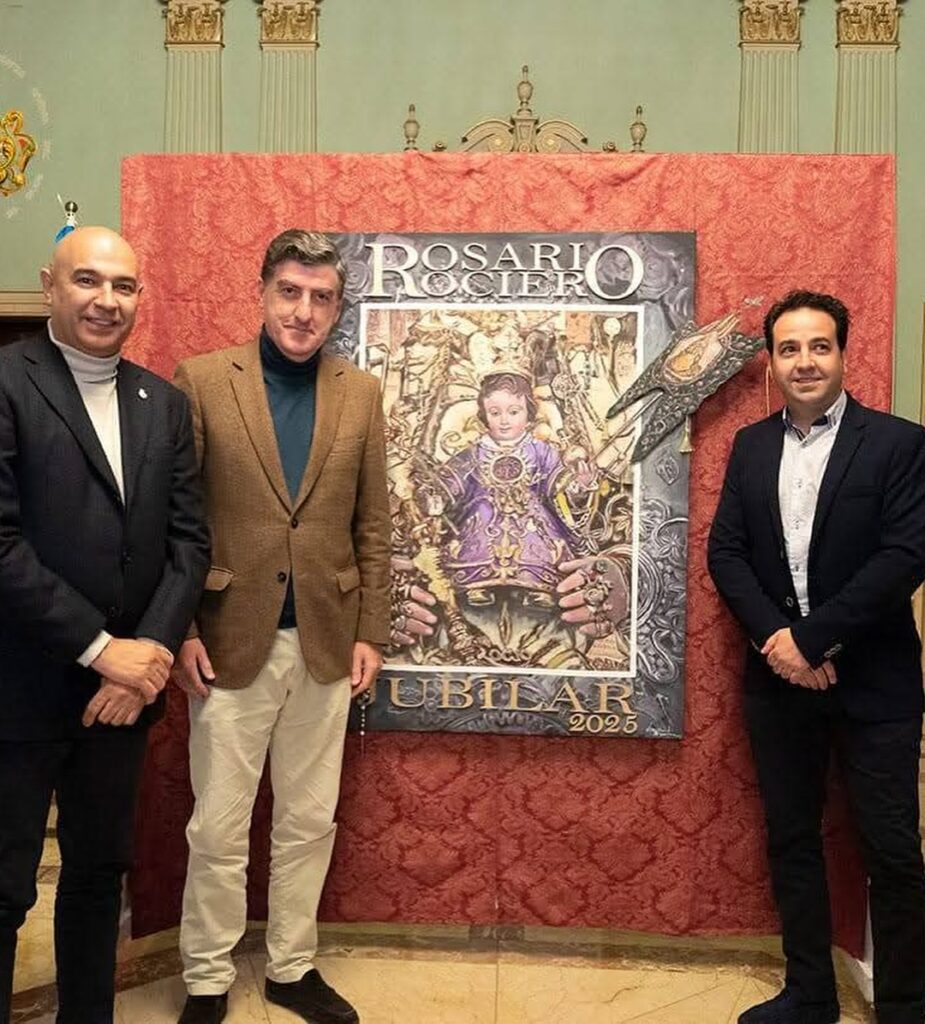 El 12 de febrero se presentaba en el Salón de Plenos del Ayuntamiento de Huelva el Cartel Anunciador del “Rosario Rociero Jubilar 2025” obra del Artista Onubense Chema Riquelme.
