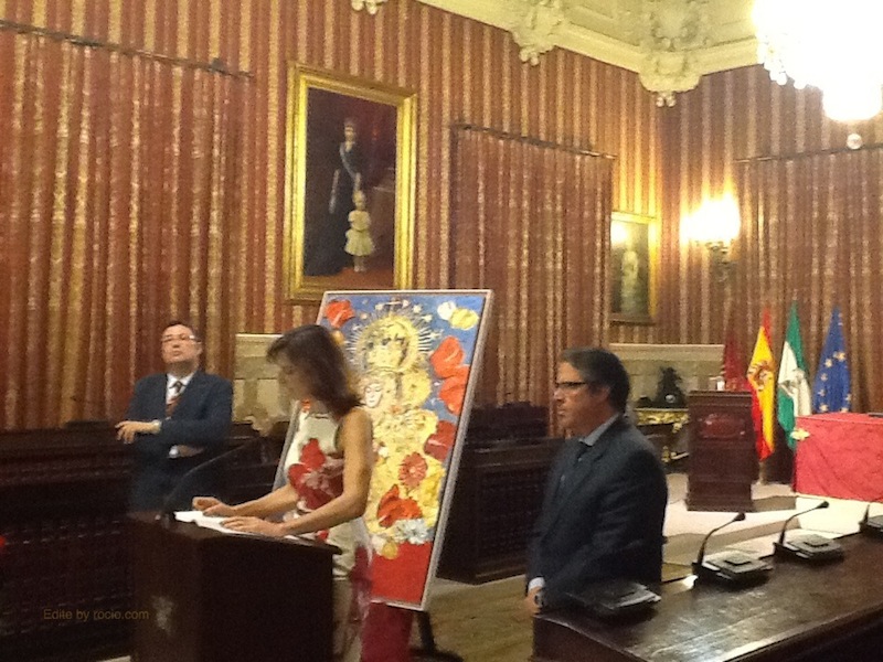 Hoy a las 11,30 h., en el Salón Colón del Ayuntamiento de Sevilla, se ha presentado el cartel de la Romería de 2014, realizado por la pintora sevillana, Dª Cristina Ybarra. En dicho acto se inaugura una exposición con los trabajos preparatorios del cartel, bocetos y otras obras de la autora.