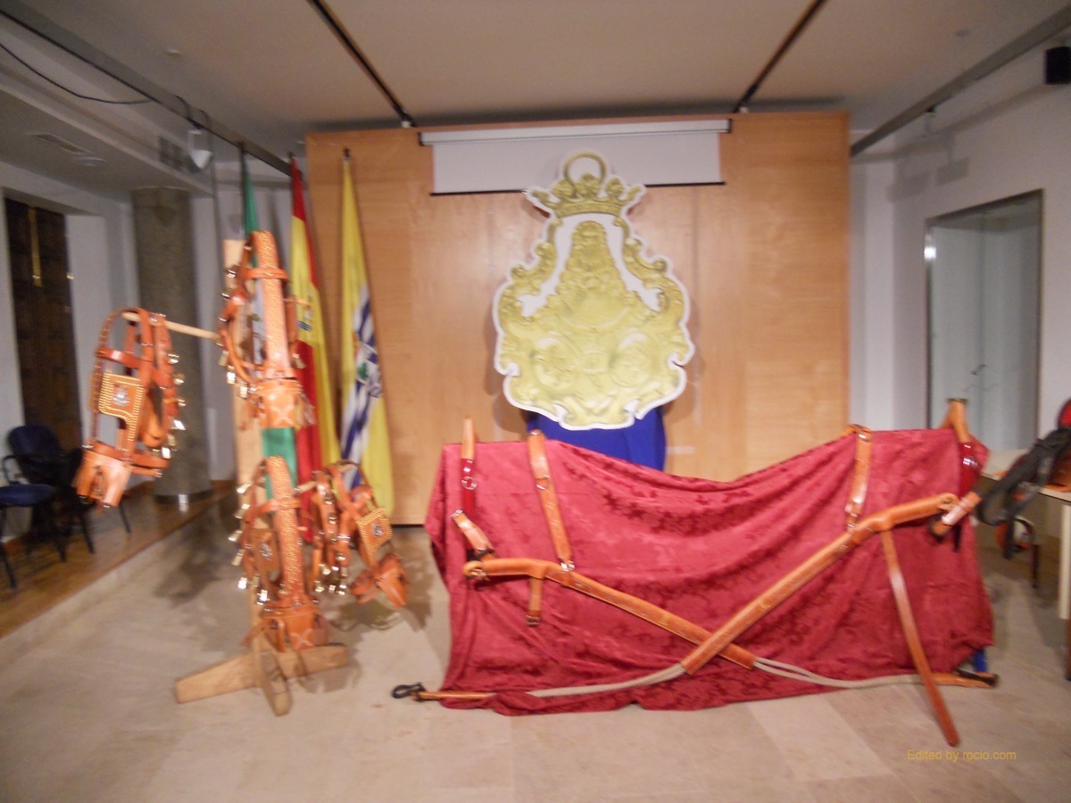 Antes de finalizar el acto, el Presidente invitó a todos los asistentes para que pudieran ver de primera mano, en otra sala del Patio San Francisco, una exposición para que todos pudieran contemplar la guarnicionería que este año, cuando llegue el día de iniciar camino para la Aldea de El Rocío, estrenarán los mulos que tiran de la Carreta del Simpecado.