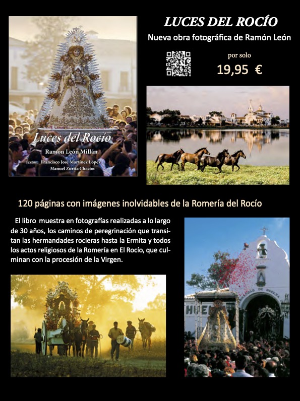 Son fotografías respetuosas, delicadas y con vocación artística, que detienen el tiempo para hacerse eco de la Historia. Son fruto de una recopilación continuada de Ramón León, pintor, fotógrafo y profesor universitario de la Facultad de Bellas Artes de la Universidad de Sevilla. Testigo incansable durante más de tres décadas de las Luces del Rocío. Sin ánimo alguno de ser exhaustivo, por la brevedad de la selección que se recoge, sí es el objetivo de de este libro resaltar la singular belleza y esplendor de la Romería del Rocío.