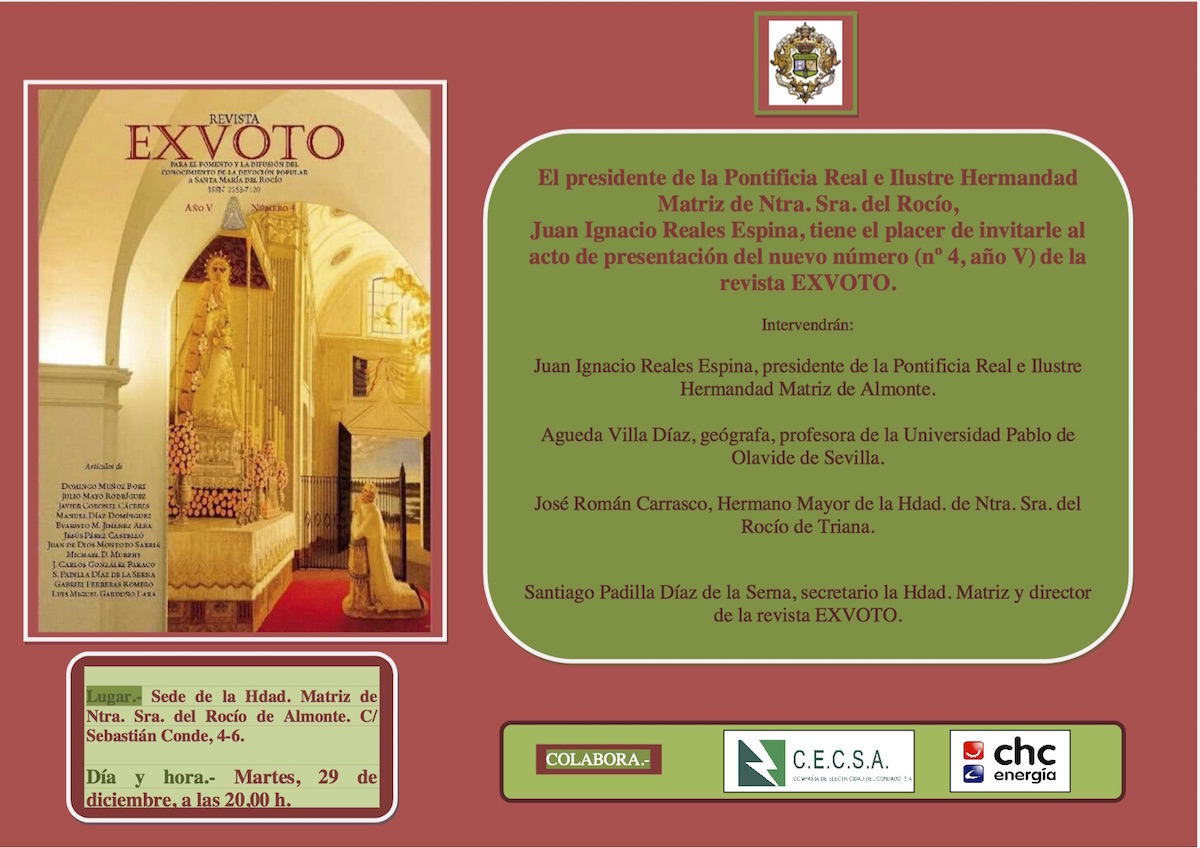 Hoy, martes 29 de diciembre de 2015, se ha presentado el nuevo número (nº 4, año V) de la revista EXVOTO.