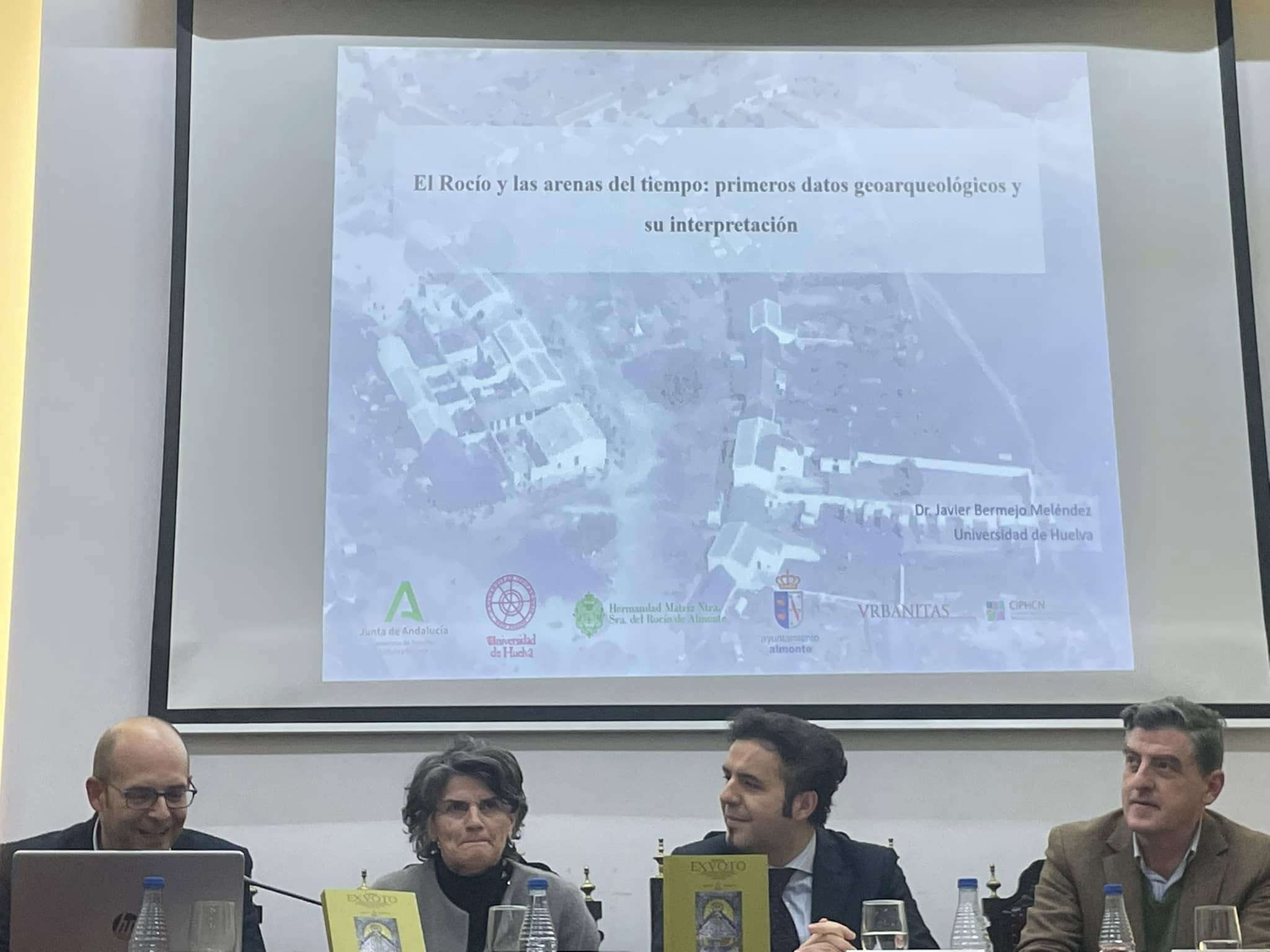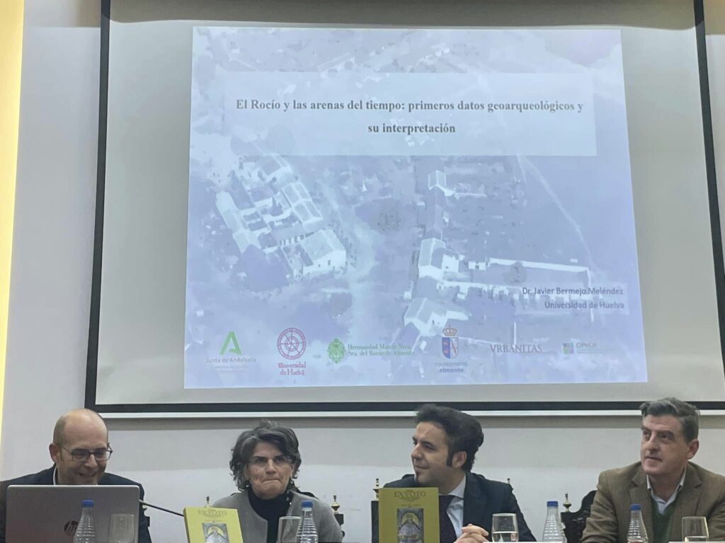 En el citado acto se realizó una interesante disertación del profesor Dr. D. Javier Bermejo Meléndez, director del Departamento de Arqueología de la Universidad de Huelva sobre :»Conclusiones de la primera fase del Estudio Geoarqueológico del Rocío».