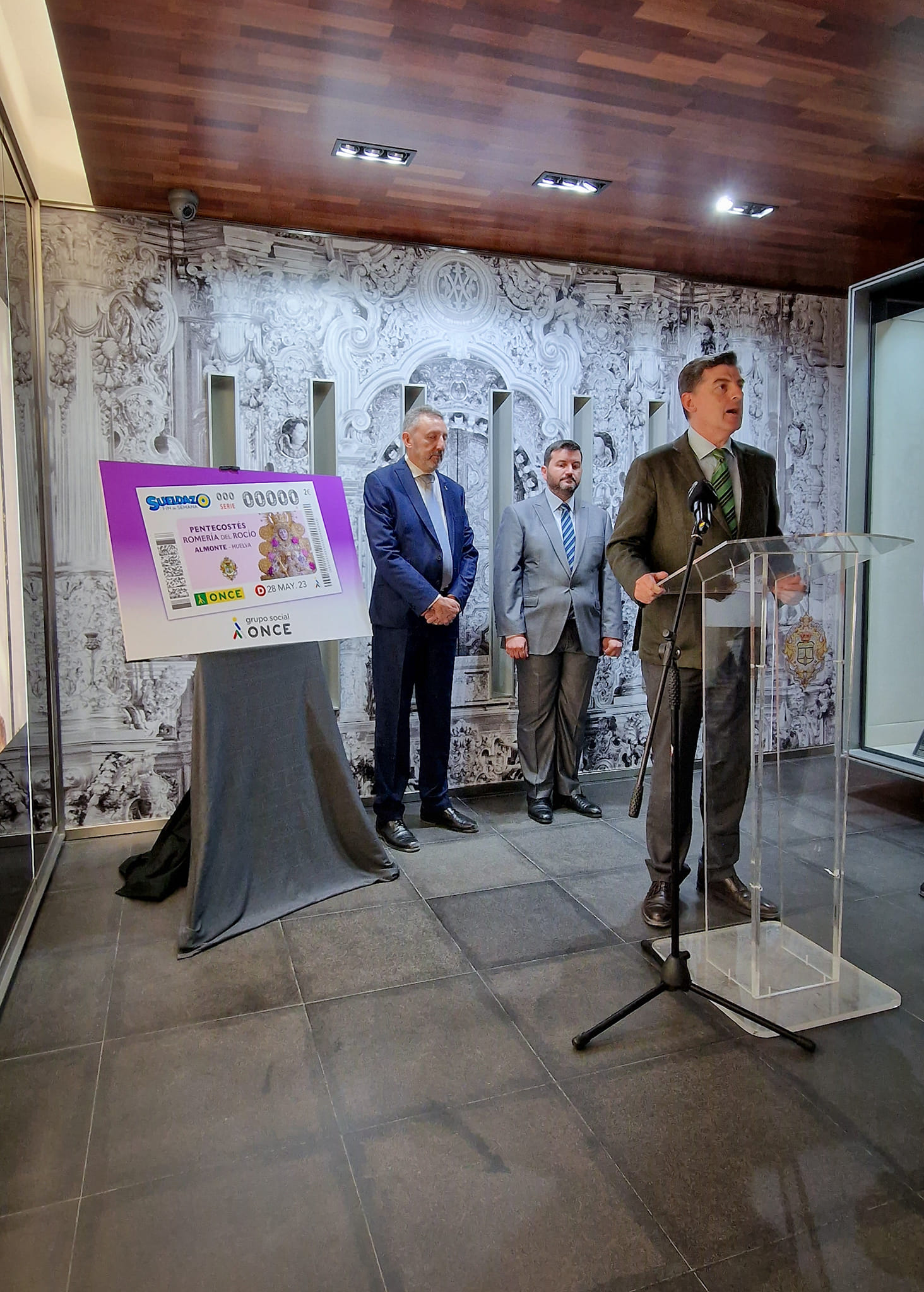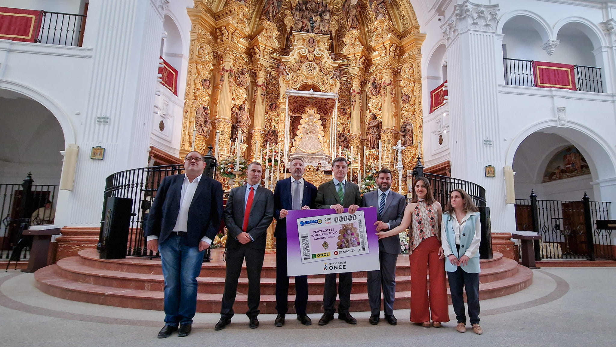 El Tesoro de la Hermandad Matriz, en el Santuario, ha acogido esta tarde la presentación del sorteo del próximo domingo, 28 de mayo, que la ONCE va a dedicar al Rocío 2023 #ElRocío23