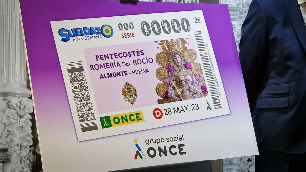 Cinco millones y medio de cupones llevan como imagen un primer plano de la Patrona de Almonte sobre el lema: ‘Pentecostés. Romería del Rocío. Almonte-Huelva’.
