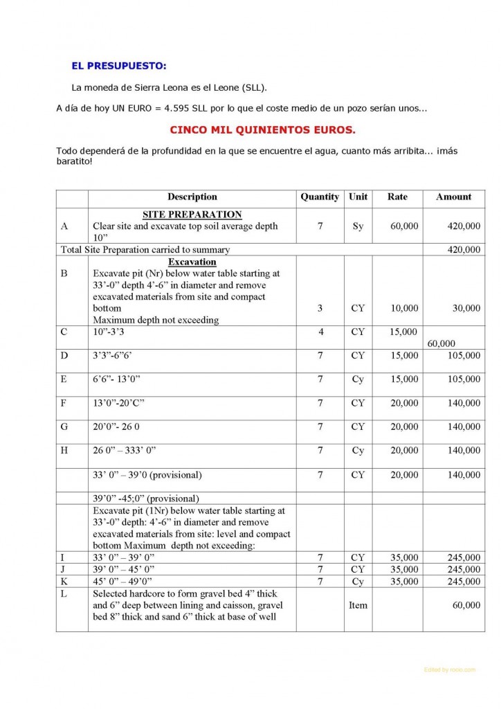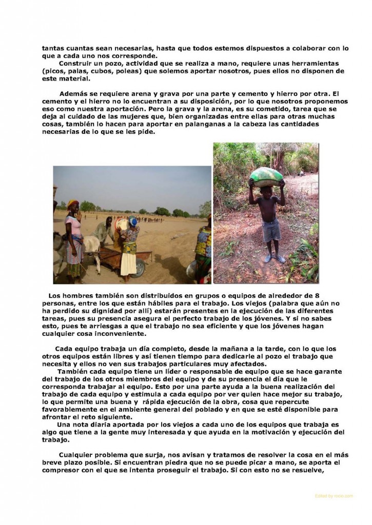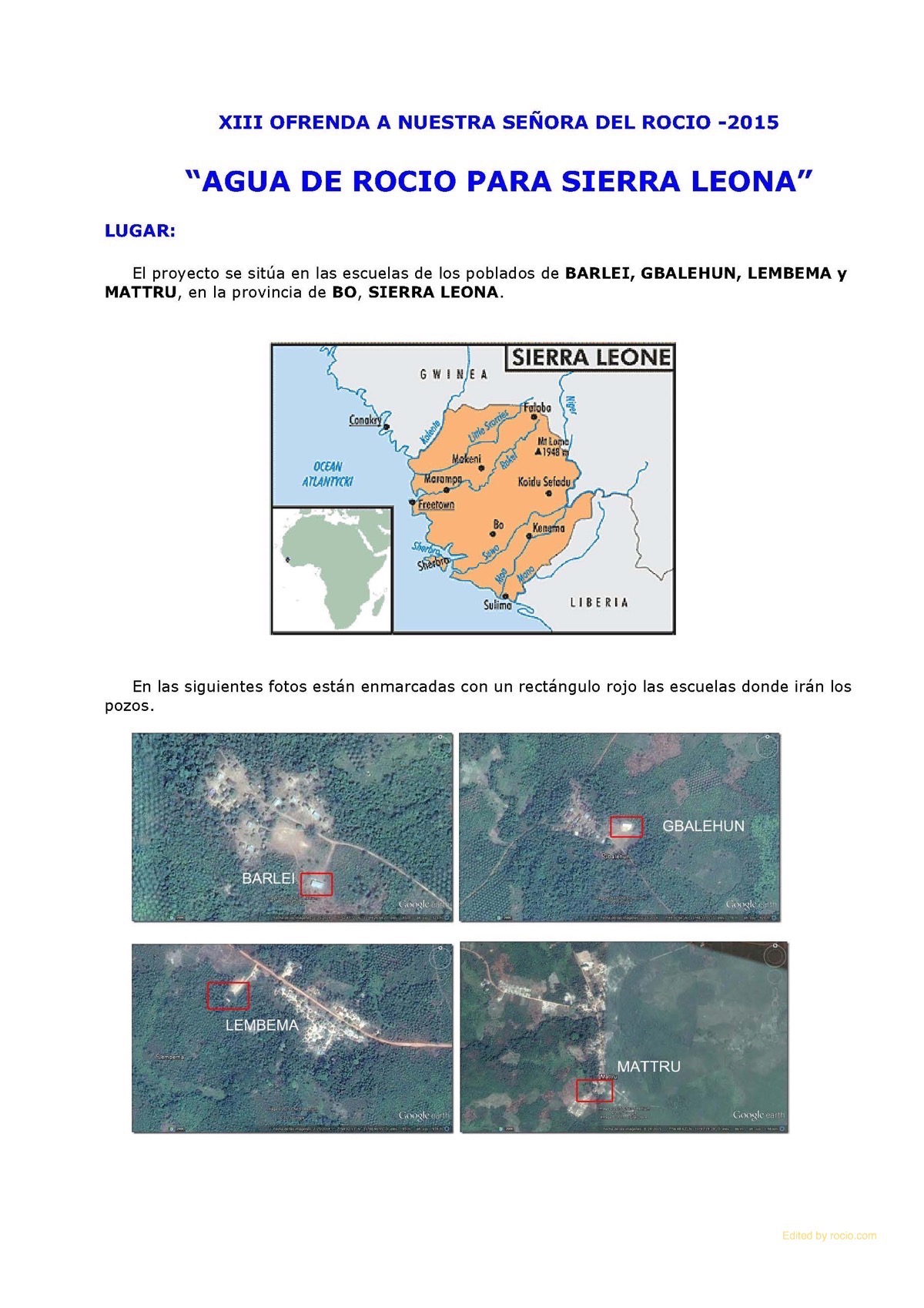 El nombre del proyecto es ilusionante: «Agua de Rocío para Sierra Leona». Esperamos nuevas propuestas y si no llegaran más, esta sería la elegida.