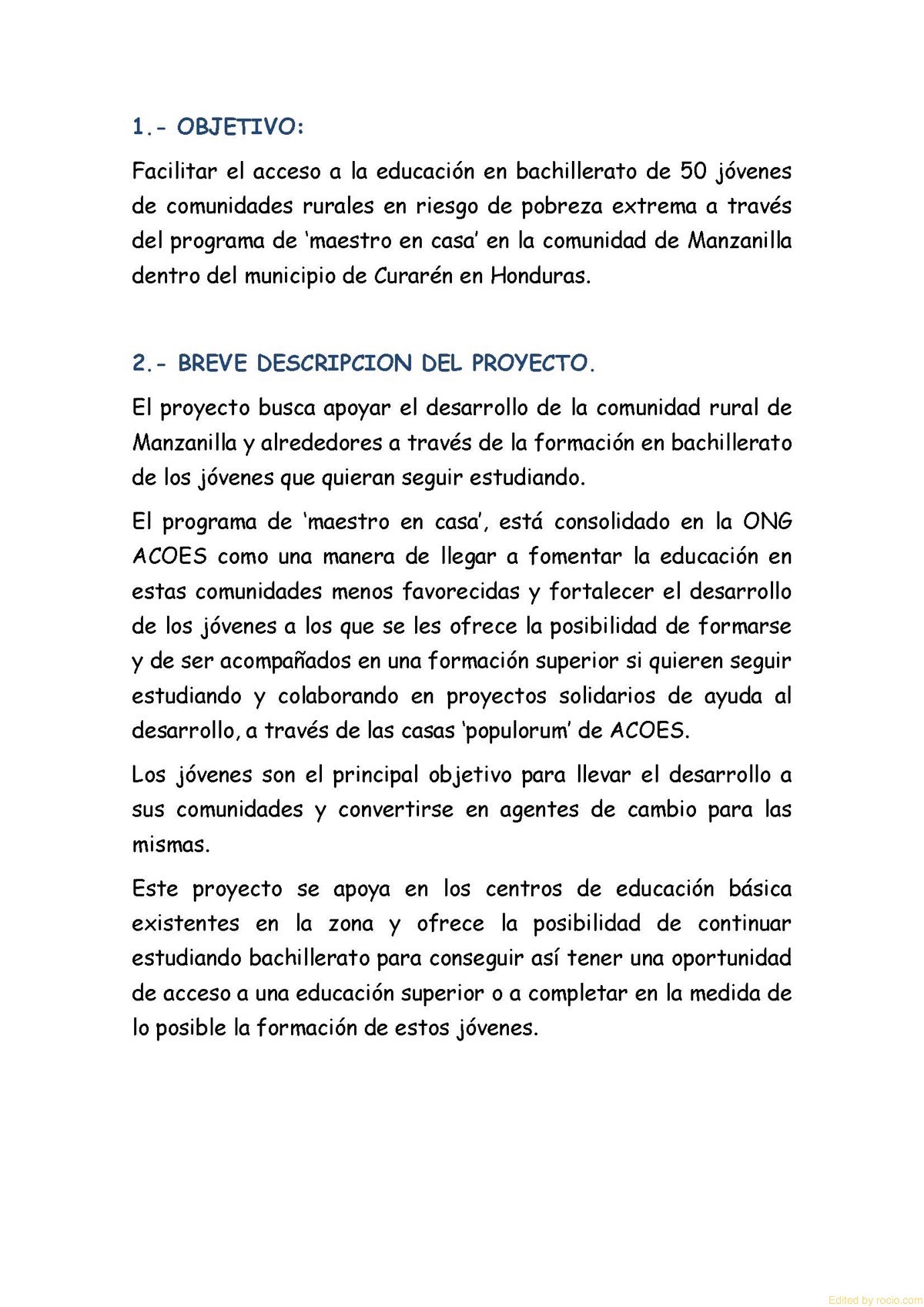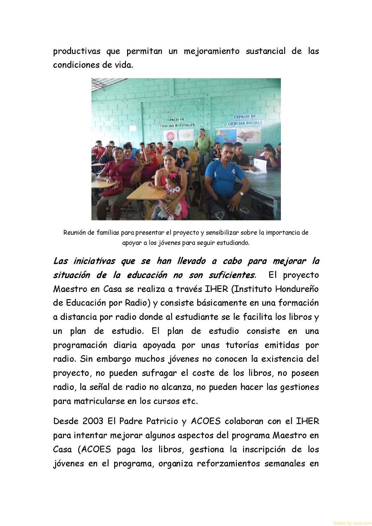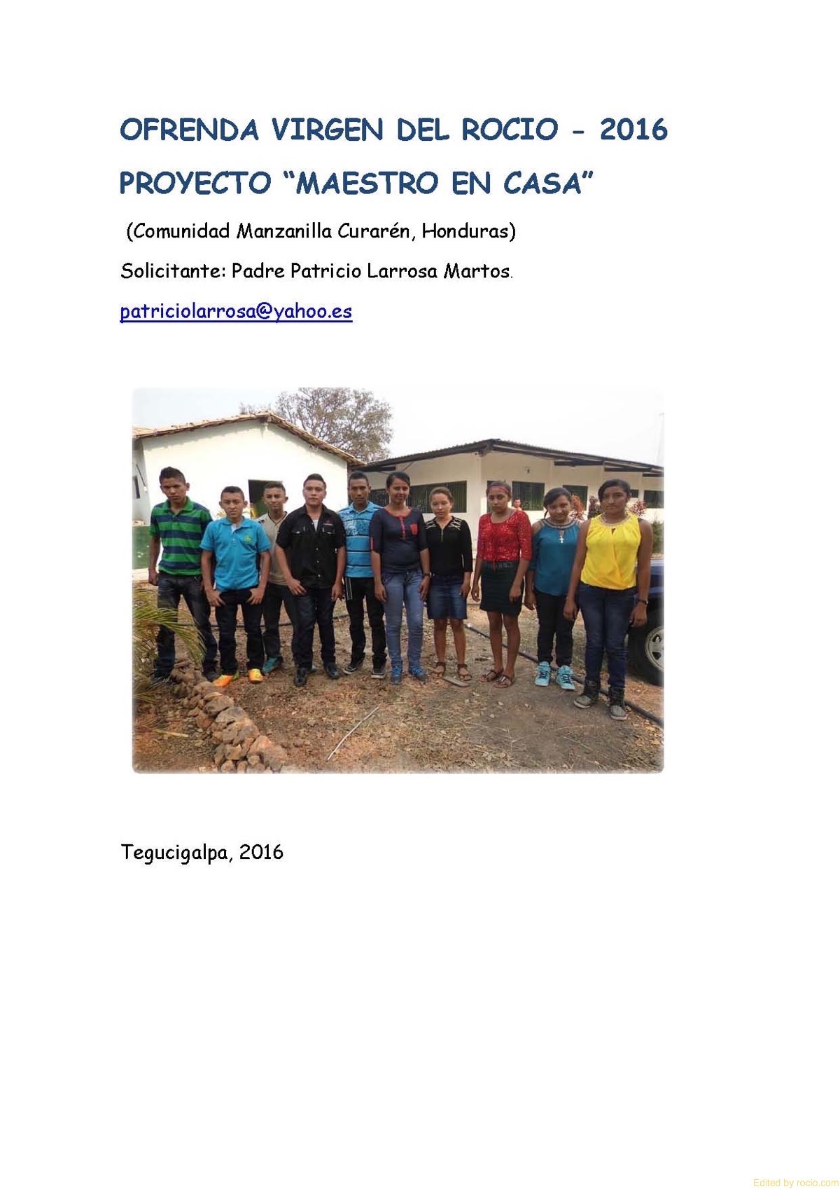 Proyecto: «Maestro en Casa». Comunidad Manzanilla Curarén, Honduras.