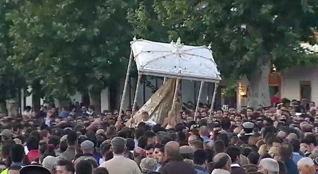 A las 3, 02 horas de la madrugada del lunes los almonteños saltaron la reja y llevaron a su Patrona en Procesión por la Aldea.