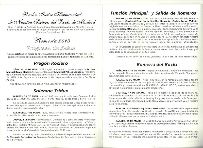 PROGRAMA DE ACTOS REAL E ILUSTRE HERMANDAD DE NUESTRA SEÑORA DEL ROCIO DE MADRID