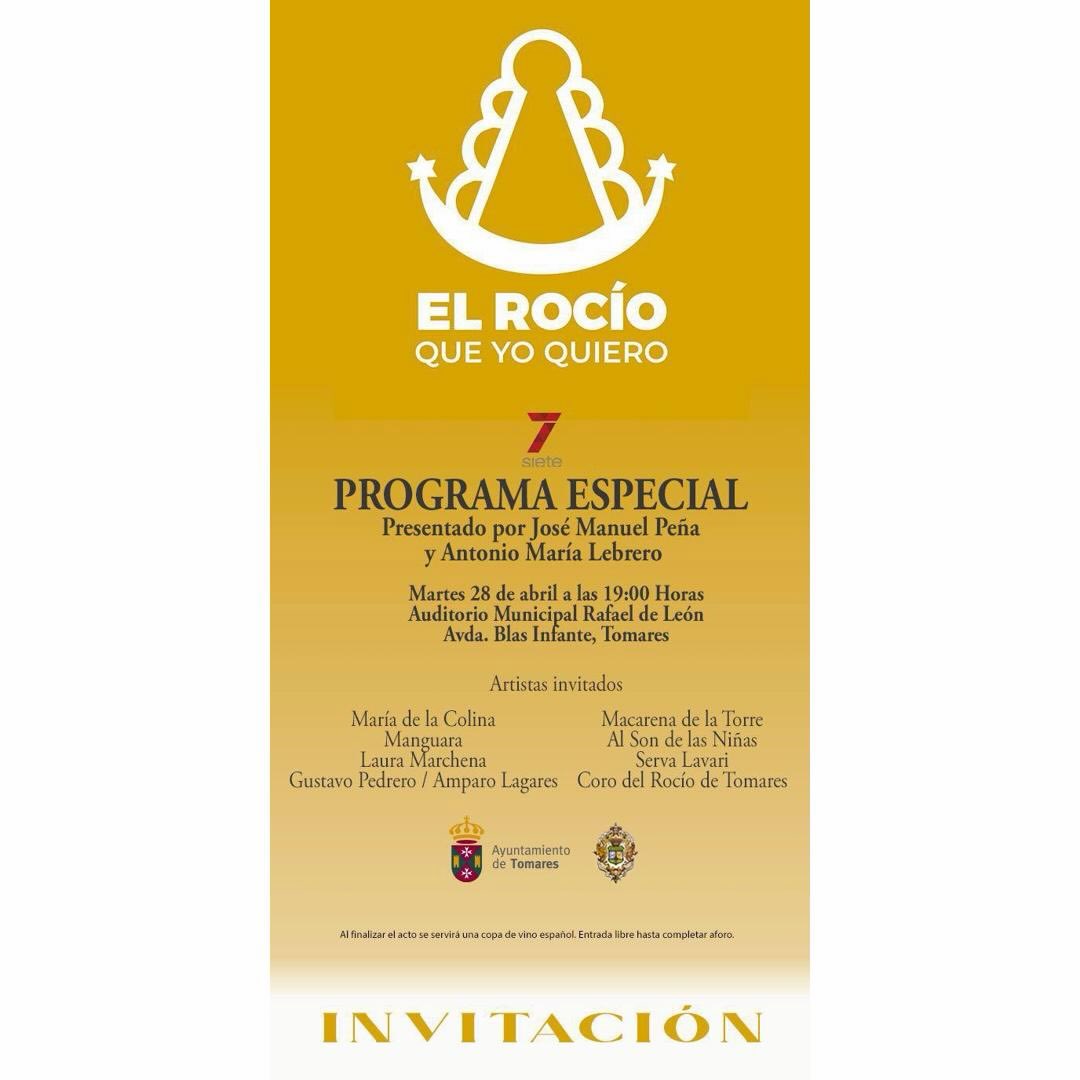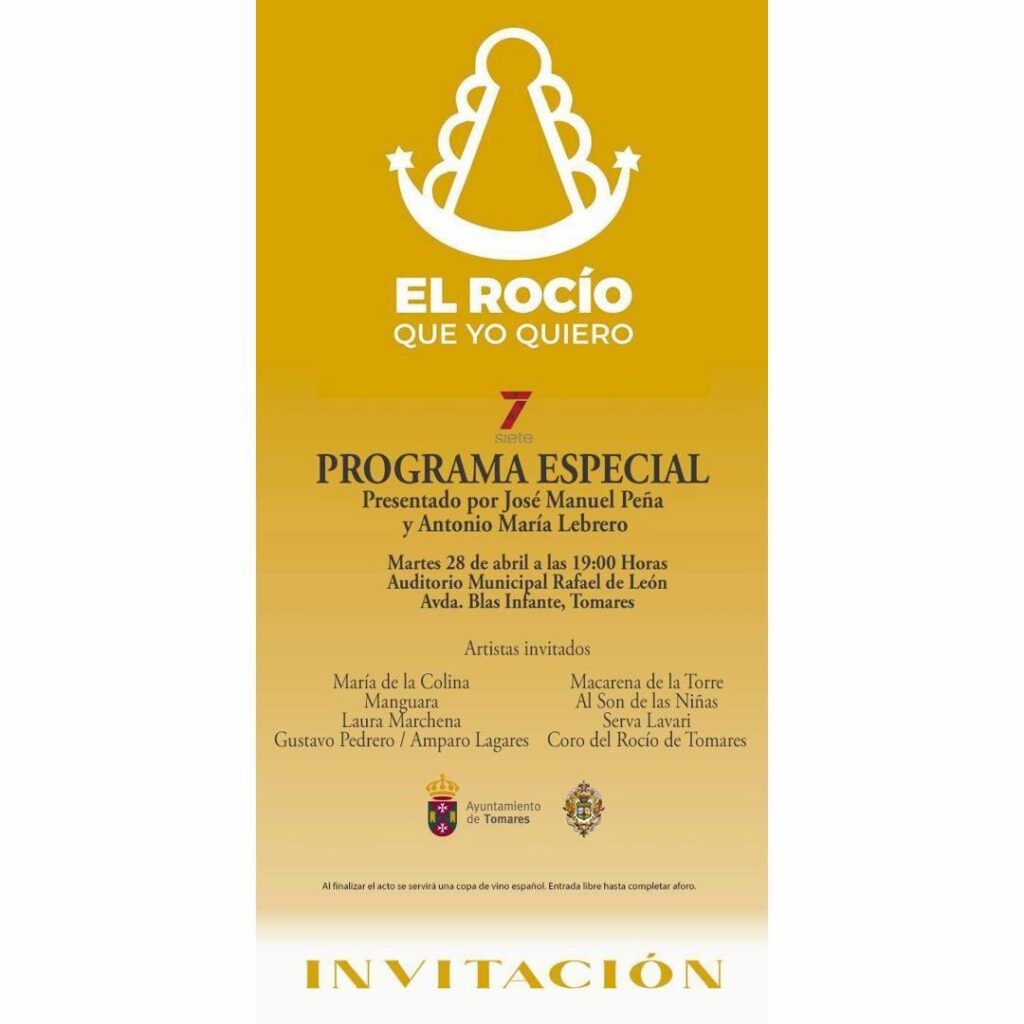 El próximo martes, a partir de las 19:30, el canal 7 TV organiza su programa especial de cara a la Romería, en el que un año más colaboramos. Se celebra en el Auditorio Rafael de León de Tomares, con entrada libre hasta completar aforo.