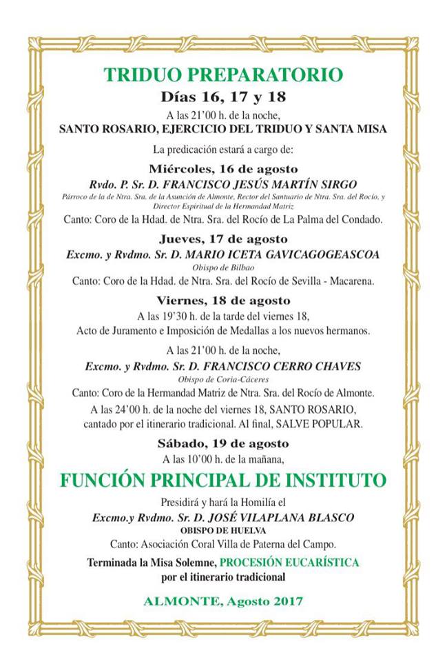 Programa de los Solemnes Cultos del Rocío Chico 2017