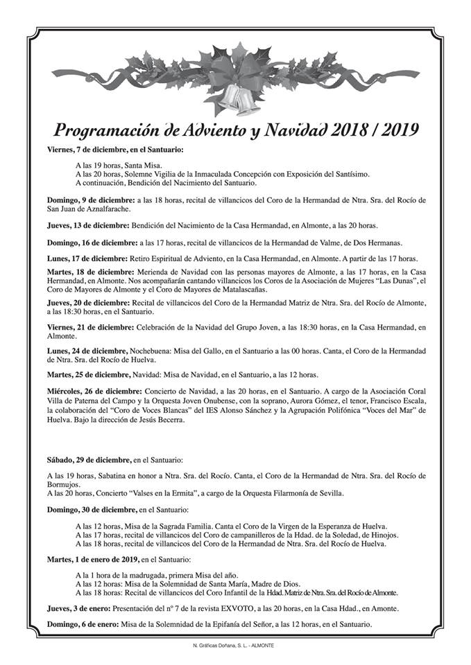 Programación de Adviento y Navidad 2018 de la Hermandad Matriz