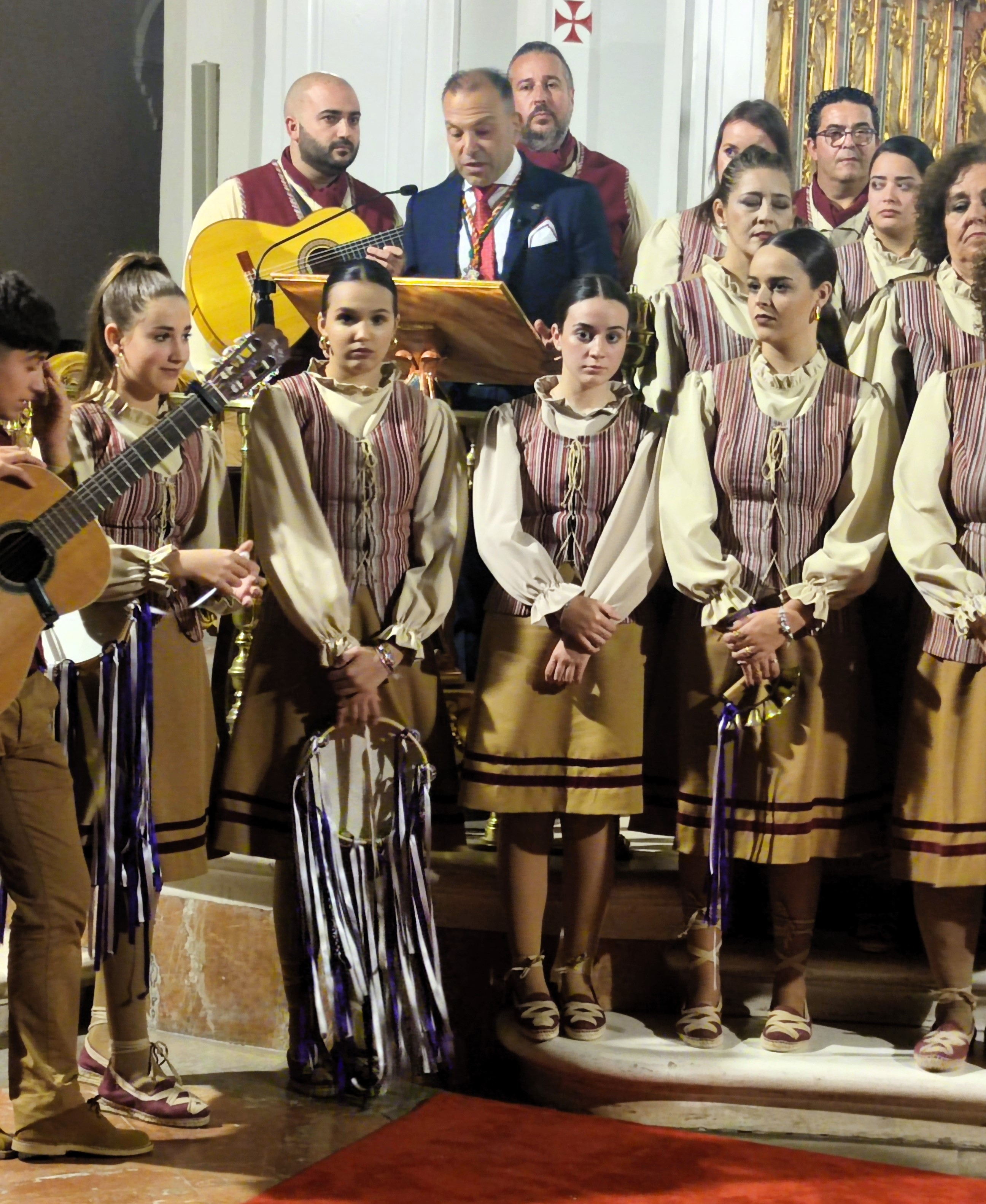 Y una noche tan especial tenía que tener otro gran condimento, en este caso el Coro de Campanilleros de la Hermandad de Nuestro Padre Jesús Cautivo de Las Cabezas de San Juan, que bajo la dirección de Antonio González y dirección musical de Enrique Maestre, puso su gran talento con la interpretación de los siguientes temas: ‘María’, ‘Olé Aleluya’, ‘Mano de Esperanza’, ‘Nació en La Rocina’, ‘Mi Dios Moreno’ y ‘Candelas de Navidad’. Todos los villancicos, excepto el primero de Rubén Gil, han sido compuesto por Enrique Maestre.